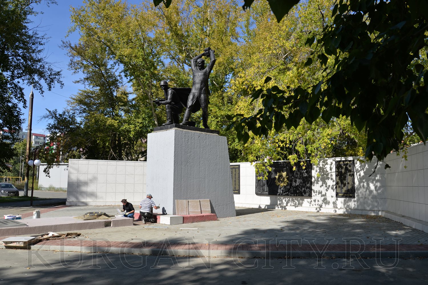 В полном объеме работы произведены на общественной территории, прилегающей к памятнику воинам - рабочим завода «Кургансельмаш». Там выполнены облицовка и ремонт памятника, установлены новые фонари освещения.