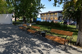 На пересечении улиц Савельева и Гоголя благоустроен сквер. Не так давно там появилась деревянная скамья необычной формы – в виде птицы. На объекте также проведены работы по укладке плиточного и асфальтового покрытия, установлены урны, высажены зеленые насаждения. На нескольких общественных территориях появится топиарий.