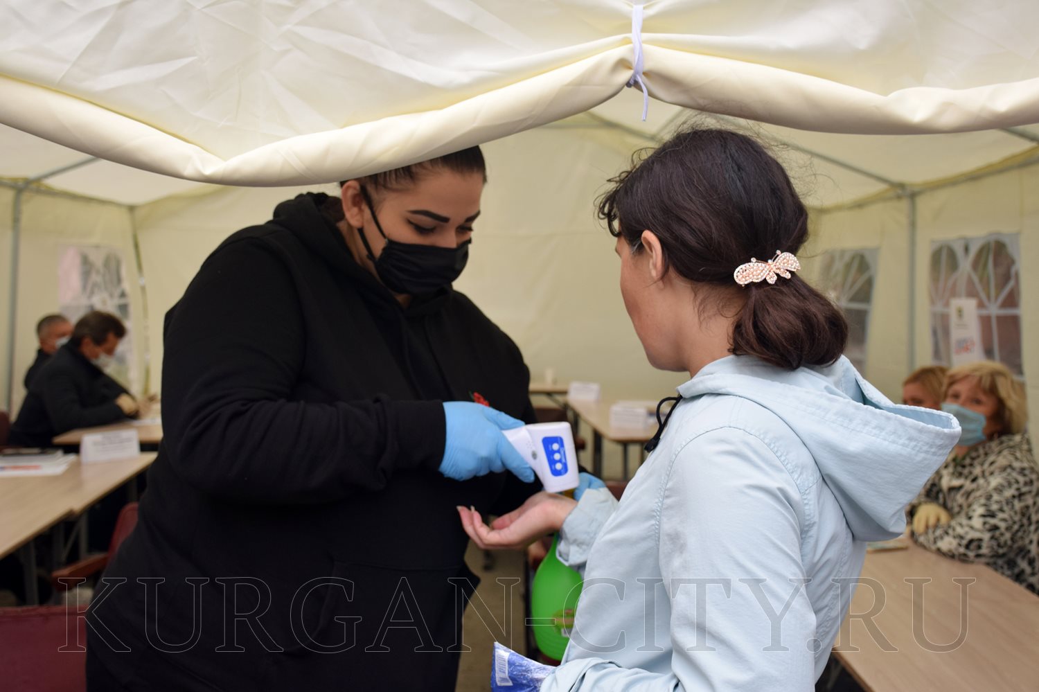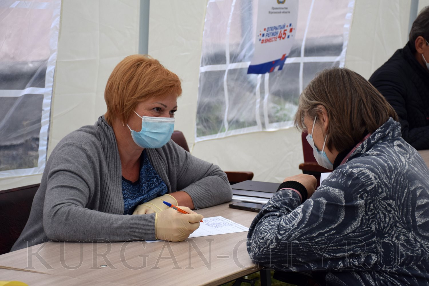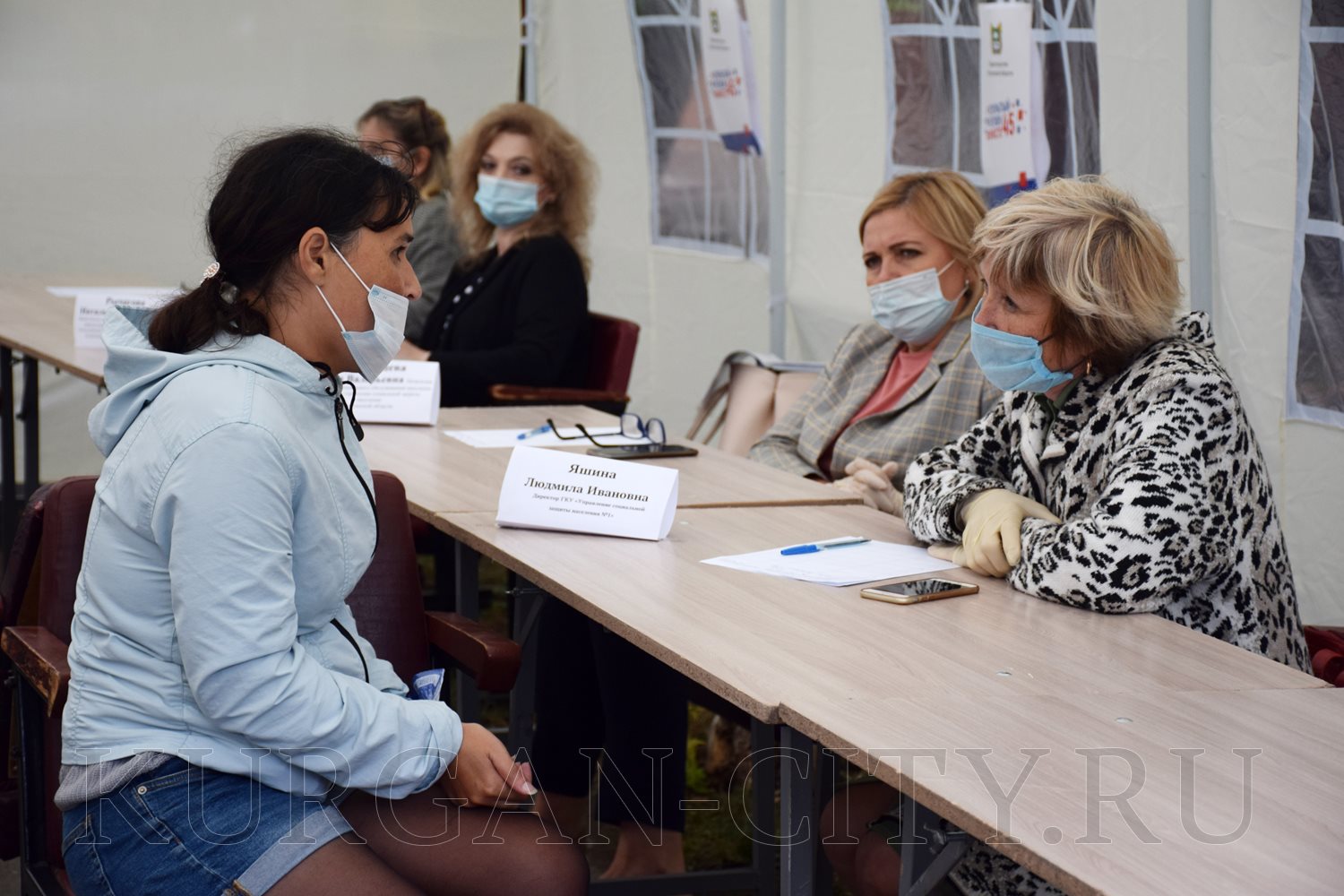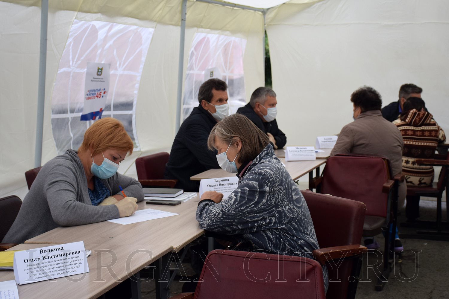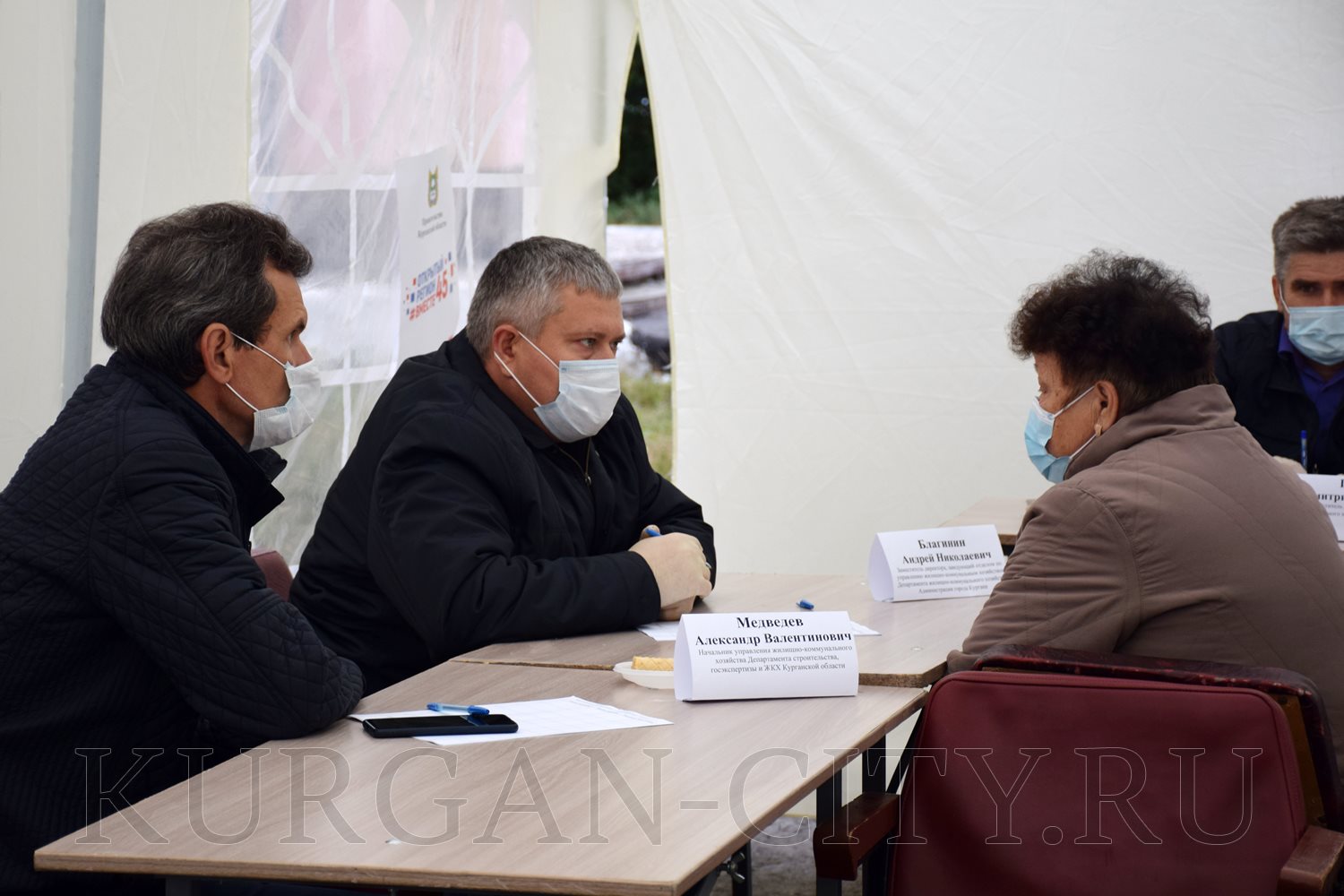Для общения с жителями на площадке у Центра культуры и досуга «Спутник» на открытом воздухе установили шатер. Прием граждан проводился с соблюдением всех мер безопасности. Курганцам, которые пришли за консультацией, измерили температуру бесконтактным термометром, обработали руки, выдали маски. Все специалисты и руководители органов власти были в масках и перчатках. Они также предварительно прошли термометрический контроль.
