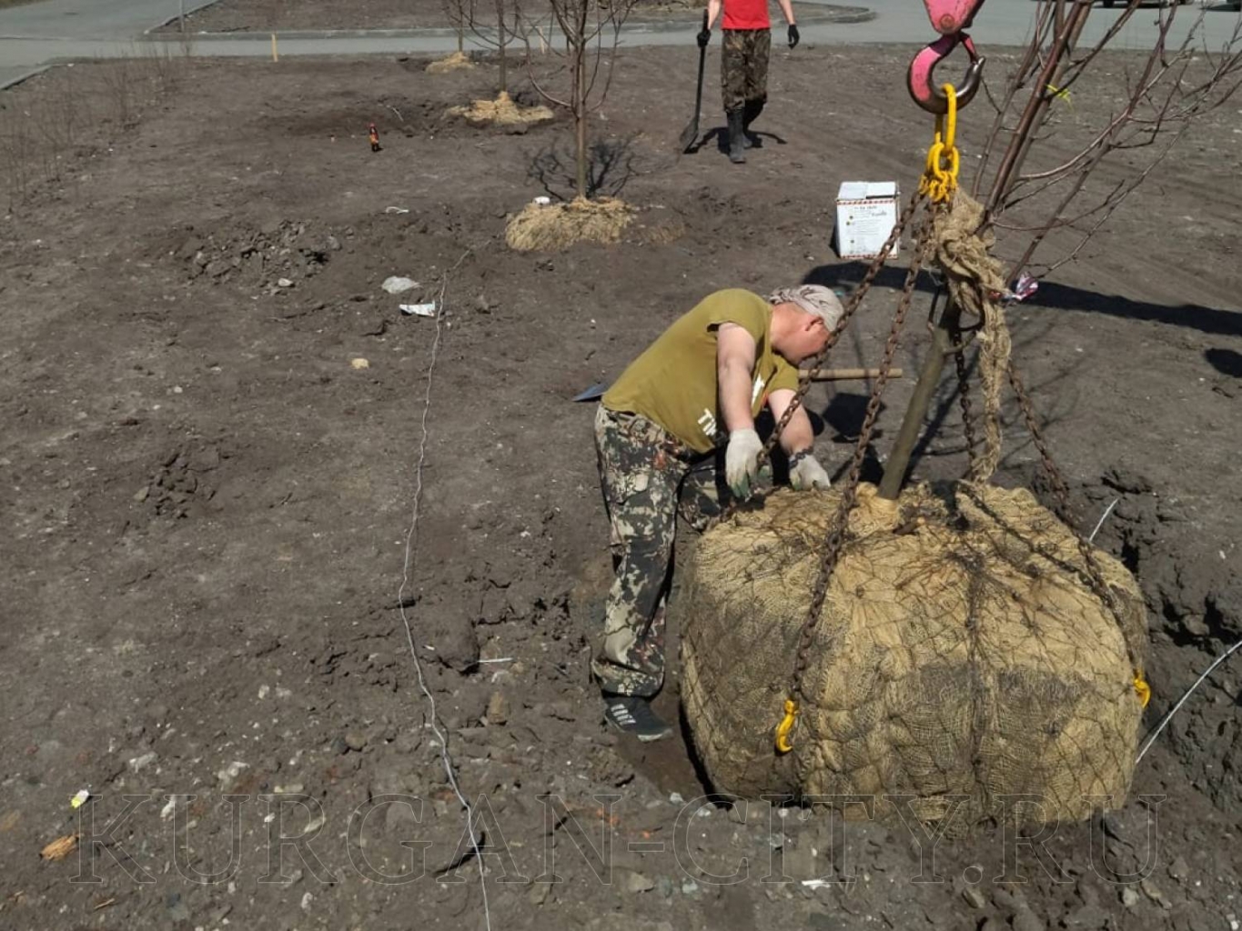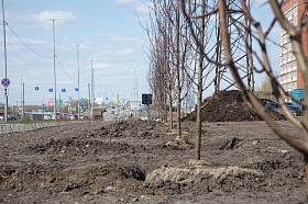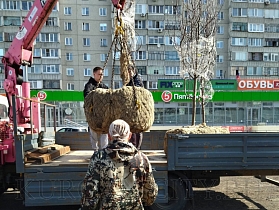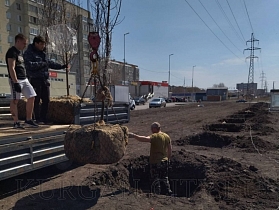 Накануне были обустроены посадочные ямы, сегодня завезли плодородный грунт. Деревья, которые высадили, - крупномеры. При их посадке использовалась система срытого крепления. Подрядчик пояснил, что такая технология гарантирует прямое положение ствола пересаженного дерева в течение одного-двух лет до того времени, пока он не укрепится за счет укоренения на новом месте посадки. При помощи специальной машины-манипулятора дерево осторожно опускали в лунку, чтобы не повредить ствол и ветки, а главное - корневую систему. Подрядчик сообщил, что контрактом предусмотрены прополка, подсыпка грунта, работы по внесению удобрений и обильному поливу деревьев, а также санитарная обрезка, если потребуется.