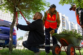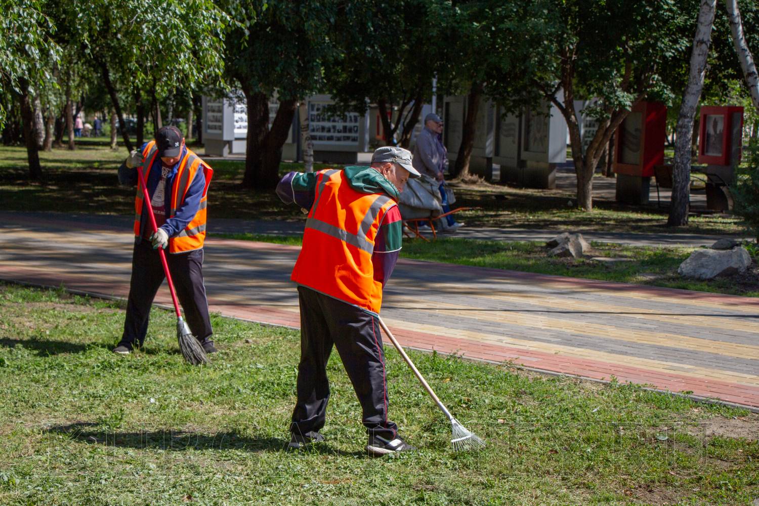 Анатолий Тарасенко пояснил, что работы по уборке и благоустройству общественных территорий включают в себя подметание тротуаров, скамеек, очистку урн, газонов от мусора, листвы, сухой травы, выкашивание газонов и общественных территорий, прополку цветников, газонов, помывку урн, памятников, МАФов, скамеек. Также специалисты учреждения осуществляют уход за деревьями и кустарниками - вырезают поросль, делают санитарную обрезку, подстрижку деревьев и живых изгородей, поливают, подкармливают зеленые насаждения. В зимнее время ведут очистку территорий от снега и наледи.