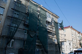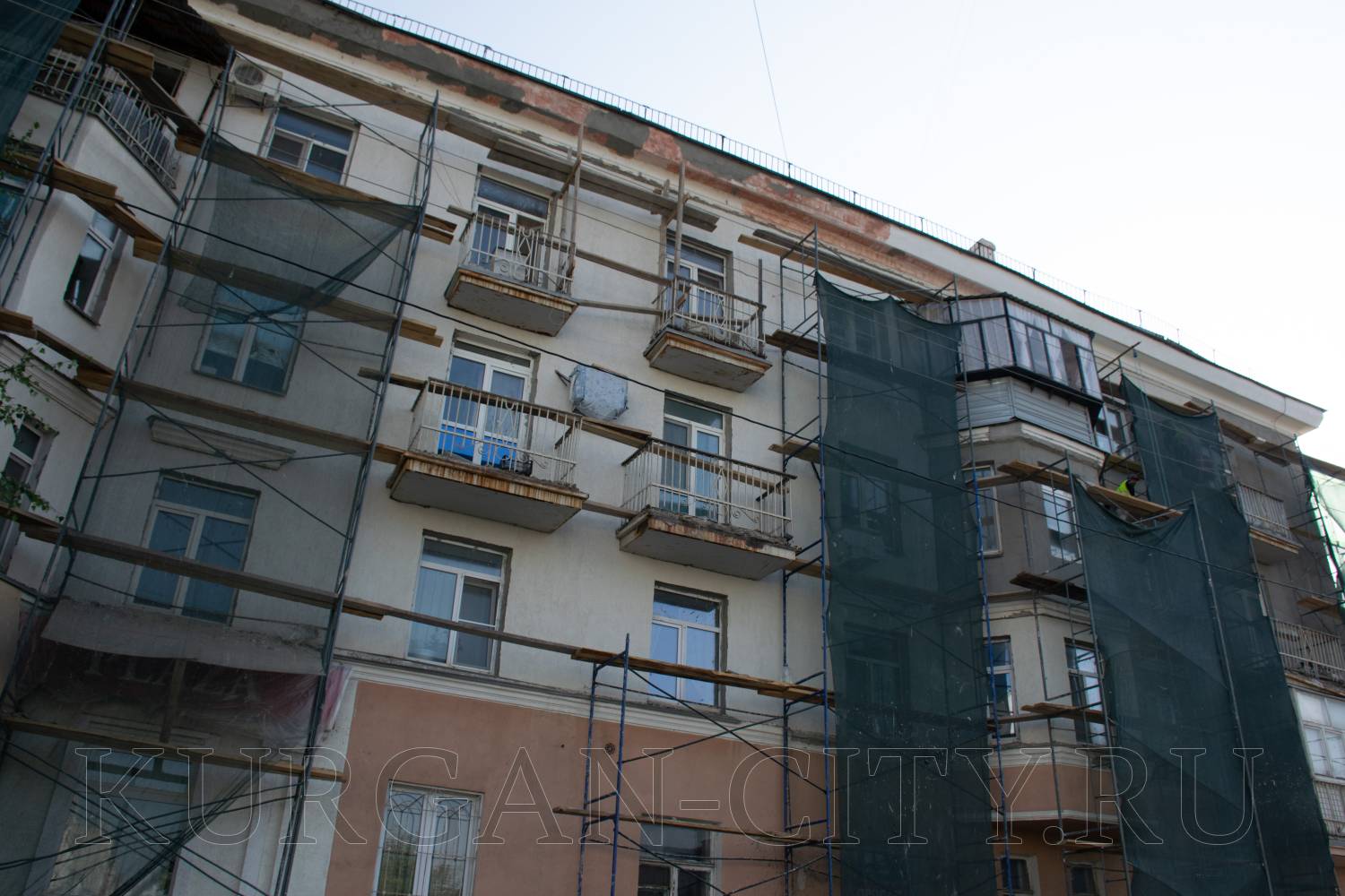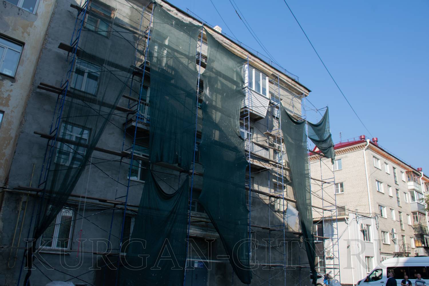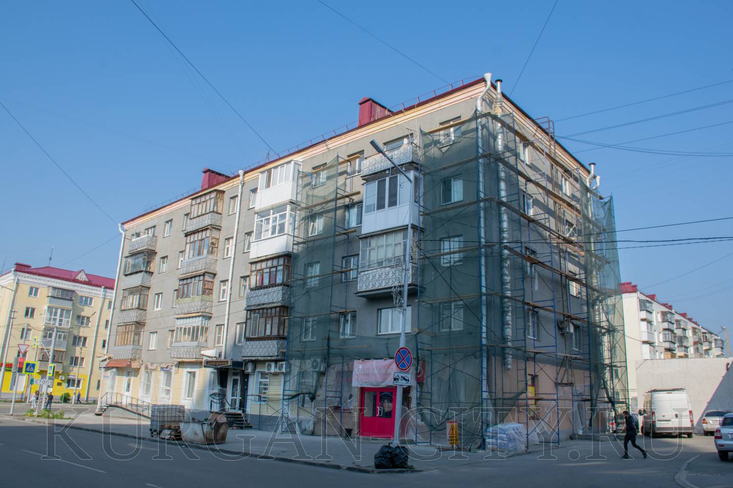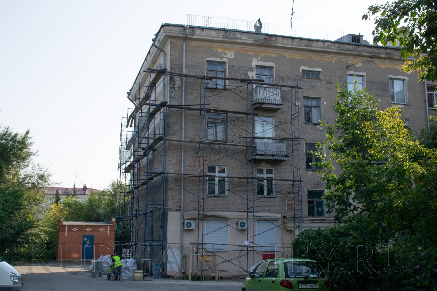 Подрядная организация ООО «Курганстрой» установила строительные леса, провела демонтаж старой штукатурки на дворовом фасаде и обоих торцах дома № 42а по улице Куйбышева. Со стороны улицы продолжается отбивка старой штукатурки.