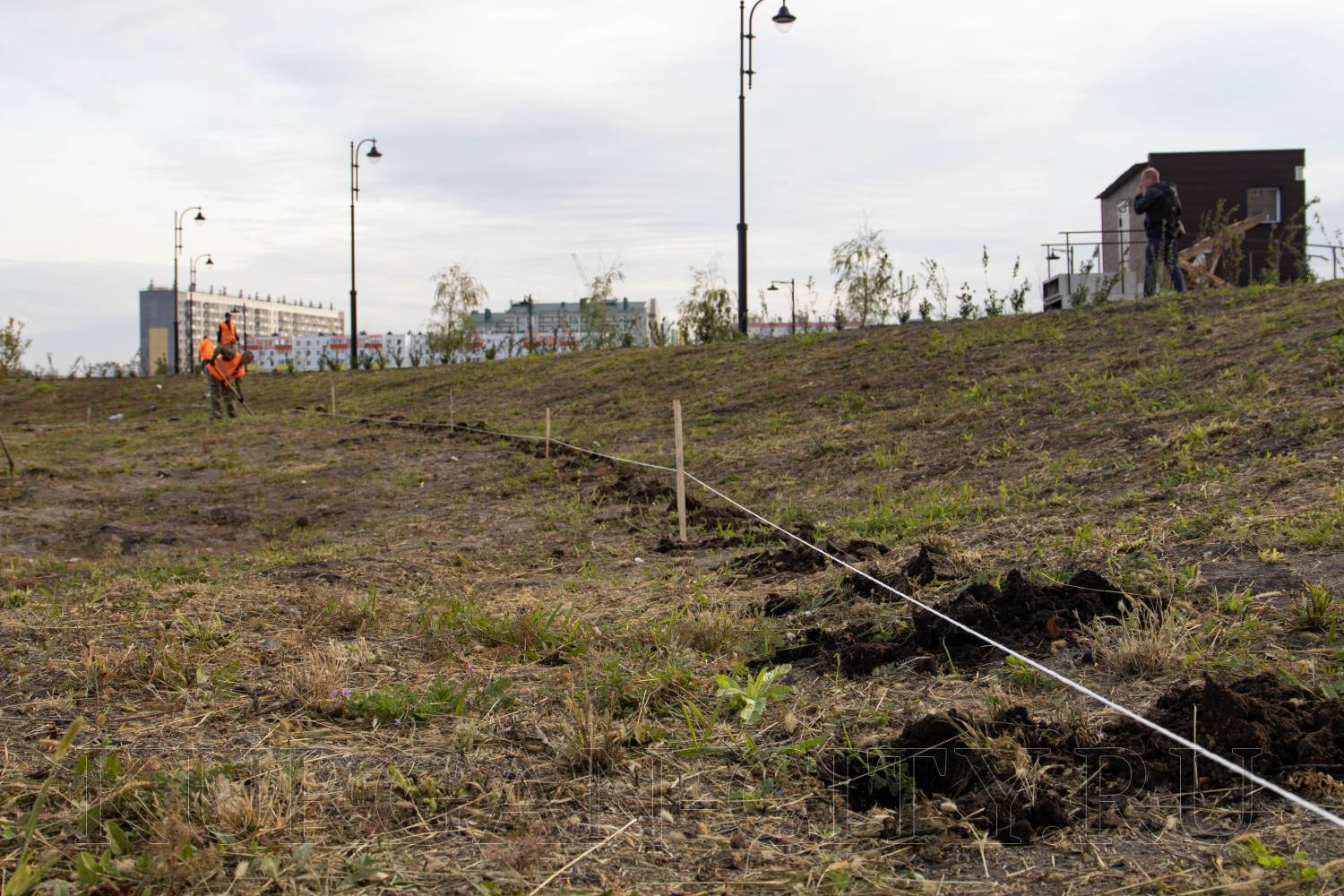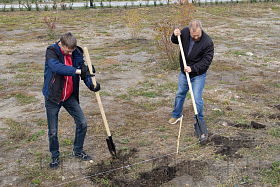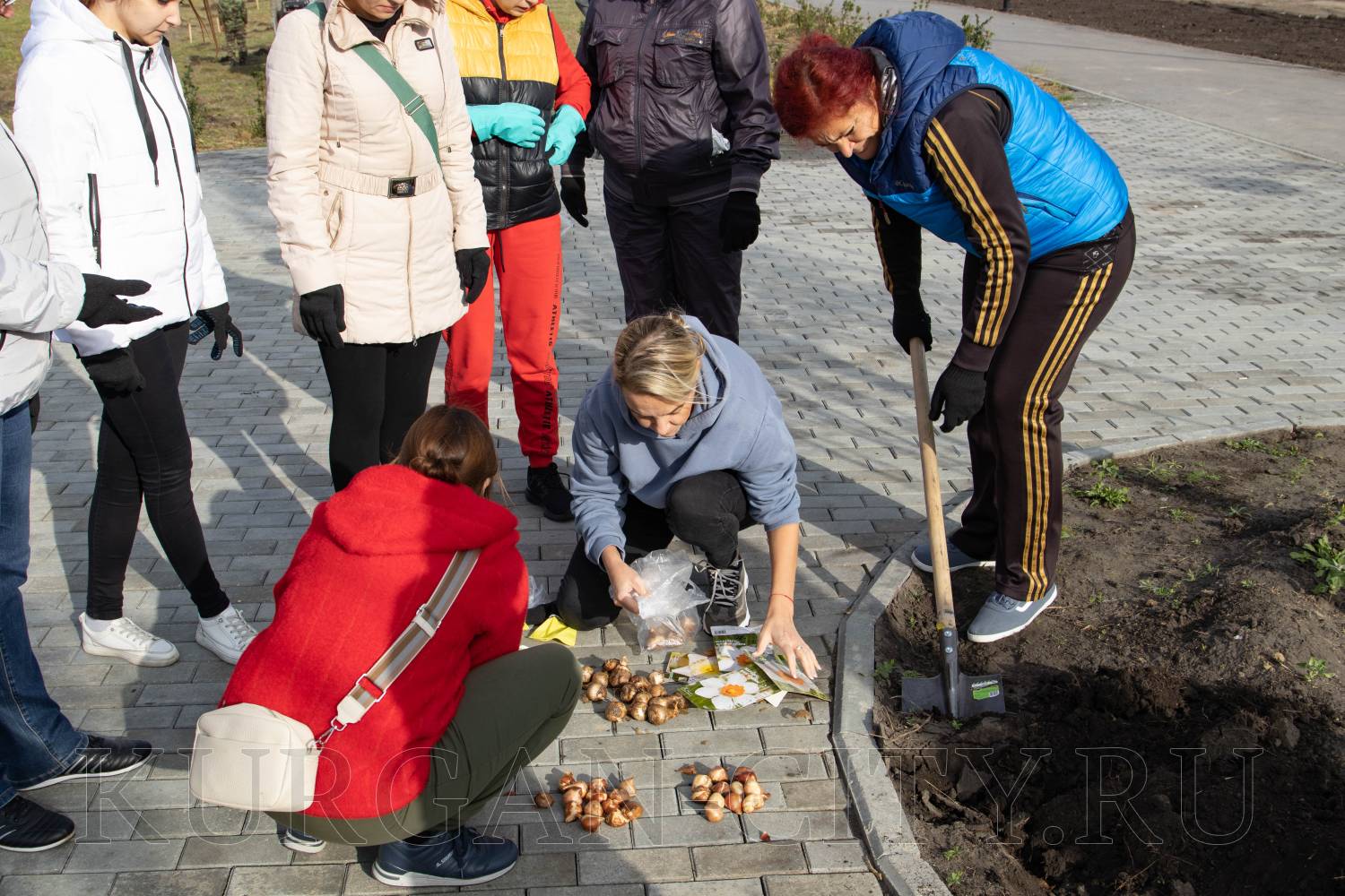 В рамках осеннего месячника санитарной очистки территории города в Кургане продолжаются субботники. Сегодня на территории нового парка в 4-м микрорайоне Заозерного Дирекция парков и скверов города Кургана подготовила места для посадки саженцев и луковичных растений, а сотрудники департамента строительства, госэкспертизы и жилищно-коммунального хозяйства Курганской области, дружно выйдя на субботник, приняли участие в озеленении нового общественного пространства.