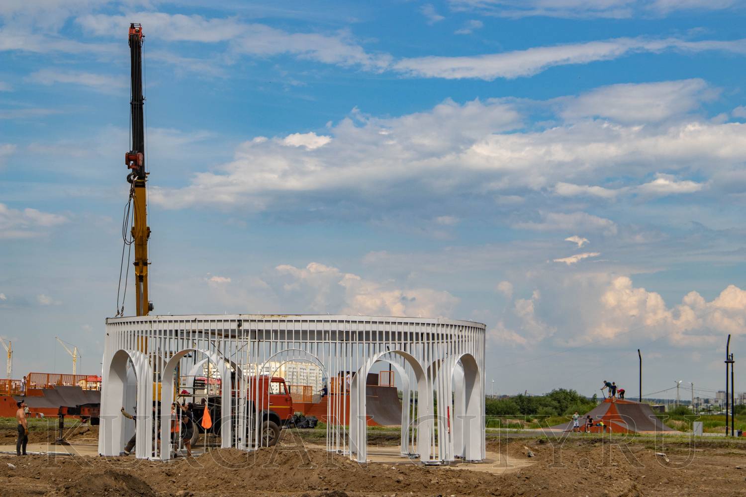 Продолжается благоустройство парка в 4-м микрорайоне Заозерного жилого массива. На новом участке общественного пространства, отведенном под благоустройство, устанавливают просторную ротонду. Здесь также ведут разравнивание грунта, чтобы сформировать новую пешеходно-тропиночную сеть. Планируется установить скамейки для отдыха и малые архитектурные формы.