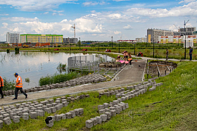 Также сейчас на территории парка продолжаются восстановительные работы – в рамках гарантийных обязательств подрядчик приводит в порядок плиточное покрытие вокруг детской площадки и водоема.