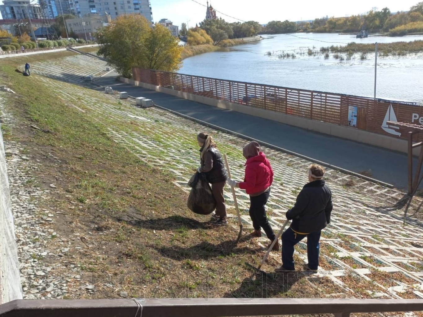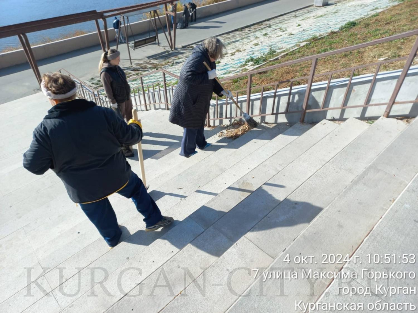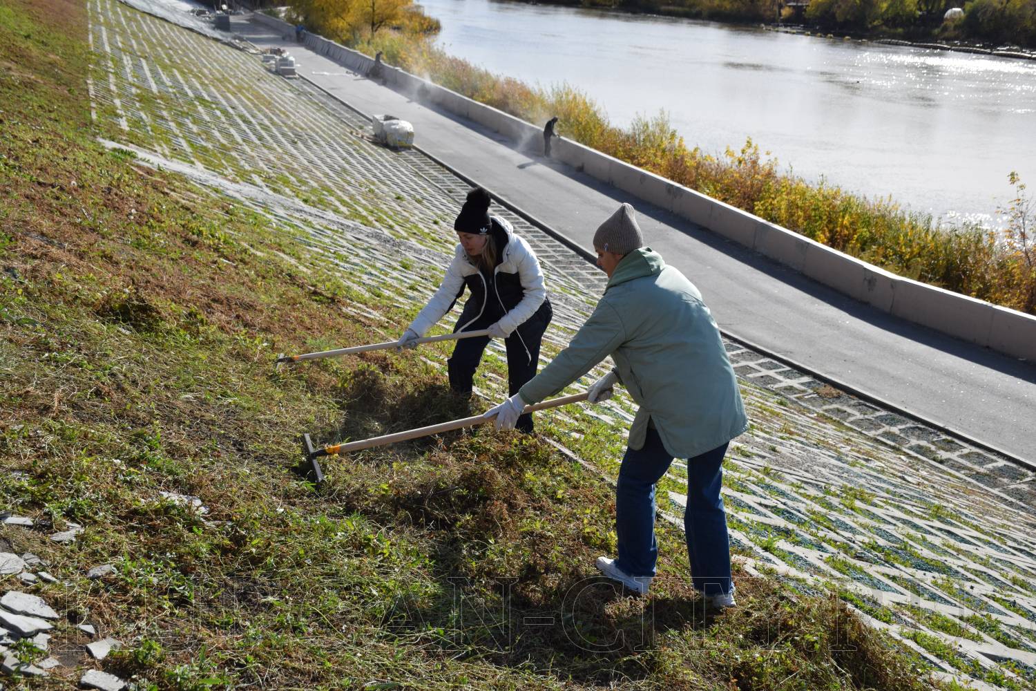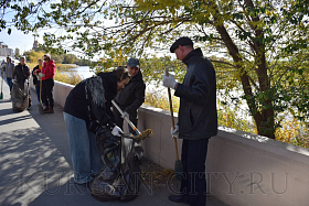 Администрация города, департаменты экономического развития и предпринимательства, ЖКХ, социальной политики, архитектуры и земельных отношений, департаменты развития городского хозяйства, финансов имущества, Управления по делам ГО и ЧС подметали набережную, очищали ее от сухих листьев, веток и мусора.
