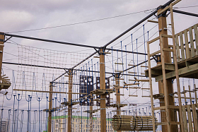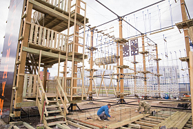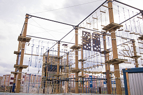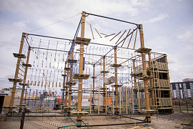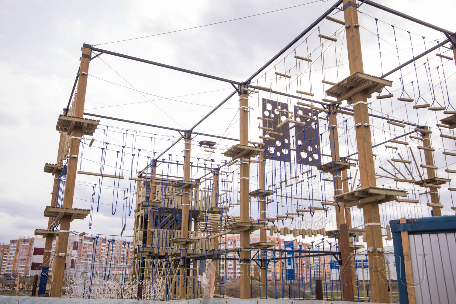 В настоящее время ведется монтаж трехуровневой конструкции. В верёвочном парке будут располагаться трассы с разным уровнем сложности. Испытать свои силу и ловкость здесь смогут жители разных возрастов.