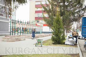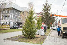 В Кургане в рамках программы по озеленению города началась посадка деревьев в скверах и парках, вдоль улично-дорожной сети. Так, сегодня были высажены молодые здоровые ели вдоль аллеи, расположенной по улице Гоголя.