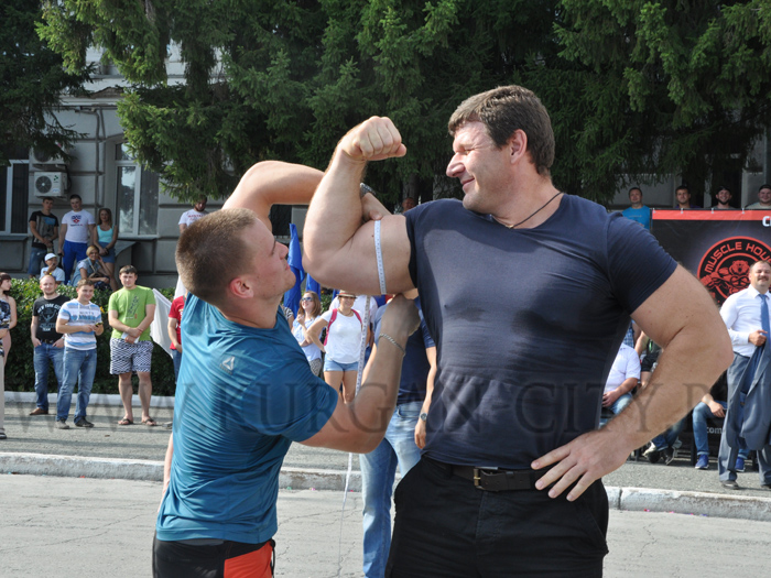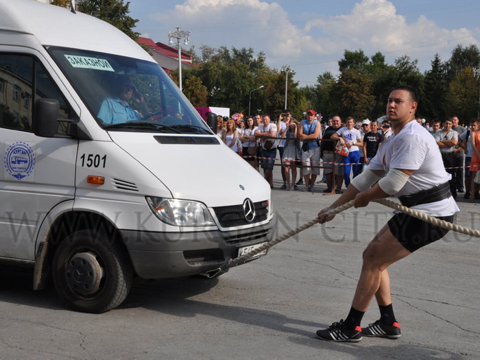 А вот на центральной площади в борьбе за призы Главы города Кургана сражались сильнейшие пауэрлифтеры Кургана, которые переворачивали колеса от «Белаза», поднимали вес, зачастую превышающий собственный вес.