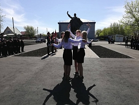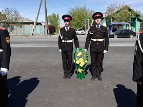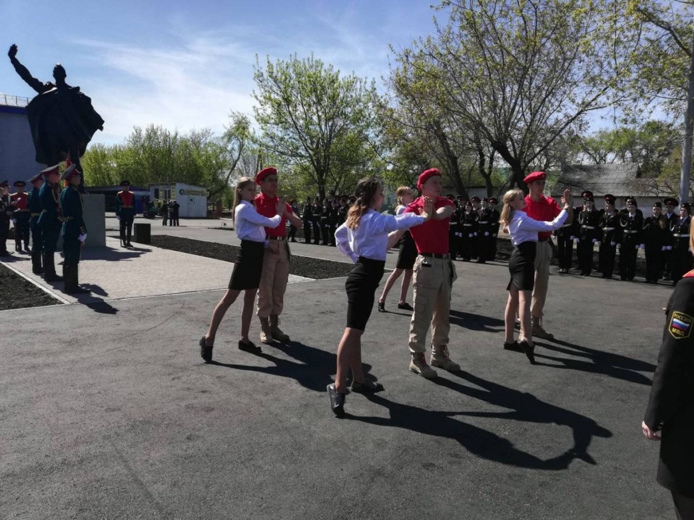 В торжественном молчании под звук метронома почтили память всех, кто не вернулся с войны. Кадеты начальной школы исполнили песню «О той весне», а ребята из юнармейского отряда станцевали «Майский вальс». В завершение мероприятия ребята возложили цветы и корзину к памятнику Александру Матросову.