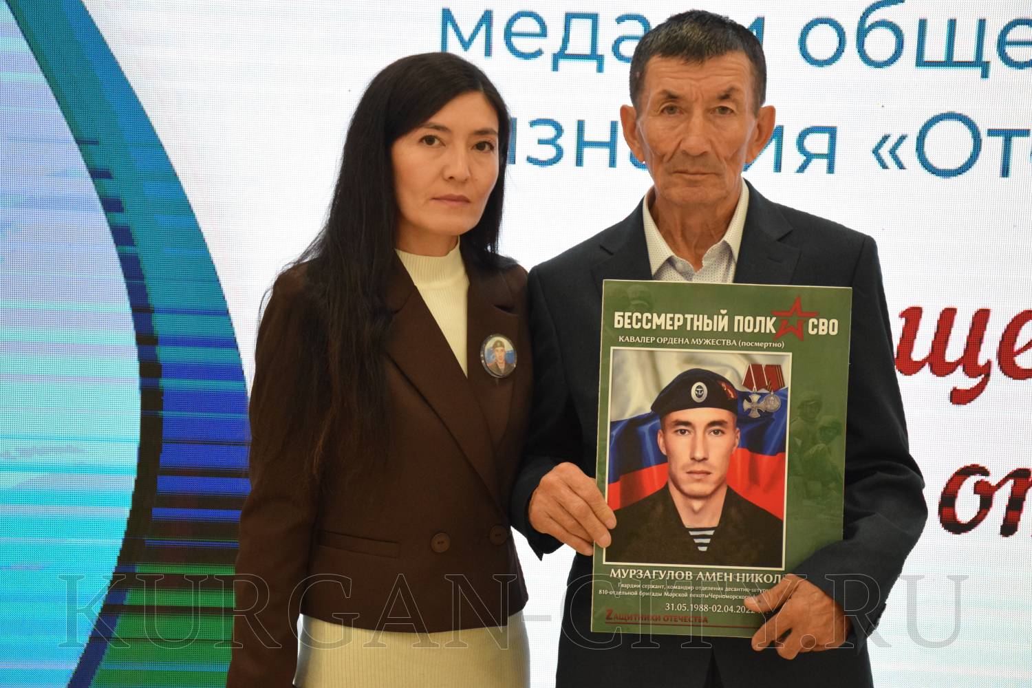 В Кургане в преддверии Дня отца, который ежегодно отмечается в третье воскресенье октября, состоялось торжественное вручение медалей общественного признания «Отец солдата». Мероприятие прошло на базе Курганского областного дома народного творчества при поддержке Курганского филиала Государственного фонда поддержки участников специальной военной операции «Защитники Отечества» и регионального отделения движения «Отцы России».