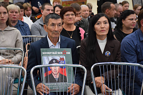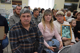 По словам руководителя Курганского отделения общероссийского фонда «Защитники Отечества» Натальи Семиной, сегодня на церемонию вручения медалей многие отцы пришли с портретами сыновей. «Для родителей это большое событие, поэтому приехали из муниципальных округов, из города Кургана целыми семьями, с женами, внуками. Фонд «Защитники Отечества» тесно взаимодействует с губернатором региона Вадимом Михайловичем Шумковым, с советом ветеранов, военкоматом. Мы все вместе, потому что ведём общее дело. Медаль общественного признания «Отец солдата» вручаем четвёртый год подряд. Это значимое мероприятие, которого ждут отцы, гордятся тем, что воспитали достойных сыновей – Героев своей страны», - отметила Наталья Викторовна.