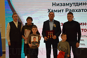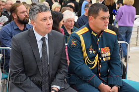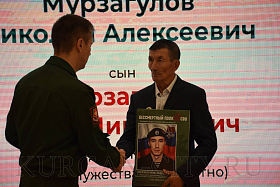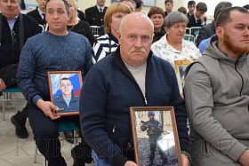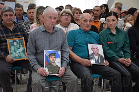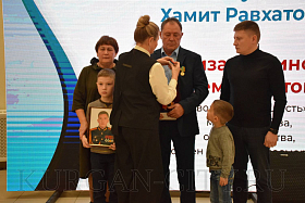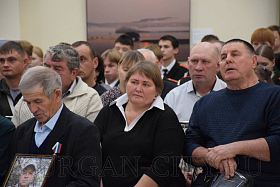 Военный комиссар Курганской области полковник Айрат Зарипов также выразил слова благодарности сидящим в зале и отметил, что все курганские ребята, призванные для прохождения военной службы, воспитаны в духе патриотизма. «Низкий поклон родителям за воспитание сыновей, достойных подвигов своих дедов в годы Великой Отечественной войны. За мужество, героизм и самоотверженность все ребята Указом Президента РФ Владимира Путина были представлены к награждению орденами и медалями», - добавил военный комиссар.