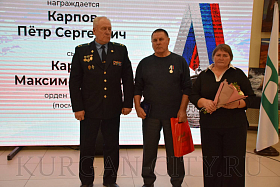 Заместитель губернатора Курганской области по социальной политике Наталья Кириллова отметила знаковый день для региона. «Главное предназначение любых родителей – воспитание патриота своего государства. И сегодня в этом зале находятся те, кто является истинными патриотами страны и Курганской области, они воспитали сыновей, которые защищают рубежи нашей Родины, защищают часто ценой своей жизни. И они высоко несут честь и достоинство своих родителей, России. Пусть медаль «Отец солдата» станет знаком признания героизма ваших сыновей, вашего родительского труда», - обратилась Наталья Николаевна к сидящим в зале отцам.