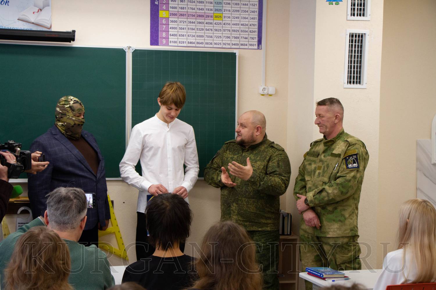Десятиклассник из Кургана Богдан Романович два года назад передал свой любимый питбайк на нужды специальной военной операции. Юноша и не подозревал, что его поступок поможет спасти жизнь двух бойцов в зоне СВО. Сегодня в школу № 56, где учится Богдан Романович, пришли ветераны специальной военной операции, среди которых был командир подразделения мотострелковой роты с позывным «Гюмри», находящийся в отпуске. Боец вручил школьнику от имени личного состава отряда, проекта «Добрая земля» благодарственное письмо с фронта, в котором Богдана отметили за патриотизм и помощь.