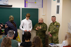 Громкими аплодисментами одноклассники встретили такую важную новость. А командир подразделения с позывным «Гюмри» рассказал историю спасения наших бойцов. «Чуть более года назад я принял питбайк, отправленный в зону СВО Богданом и оставил его в резерве. Мы выполняли боевые задачи, и в один из дней командир роты с позывным «Добрый» был сильно ранен, не мог передвигаться. Было принято решение отправить бойца с позывным «Космос» на твоем питбайке за раненым. При эвакуации на обратном пути произошел взрыв, питбайк сгорел, но бойцы уже находились близко к нашей линии фронта, и за ними отправилась медицинская группа. Главное – они остались живы и сегодня находятся на лечении», - рассказал командир подразделения. «Хочу пожать твою руку, сказать огромное спасибо родителям за воспитание, школе, где ты учишься. Я целый год мечтал о том, чтобы увидеться с тобой и сегодня такой случай представился», - добавил боец.