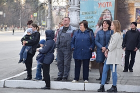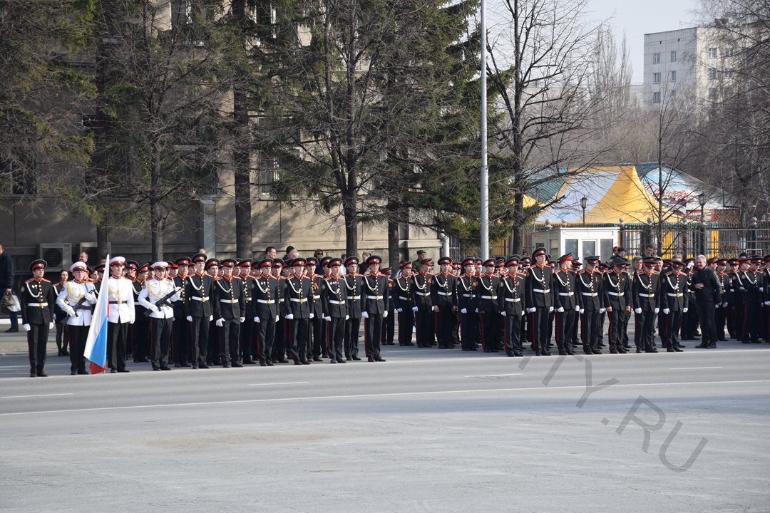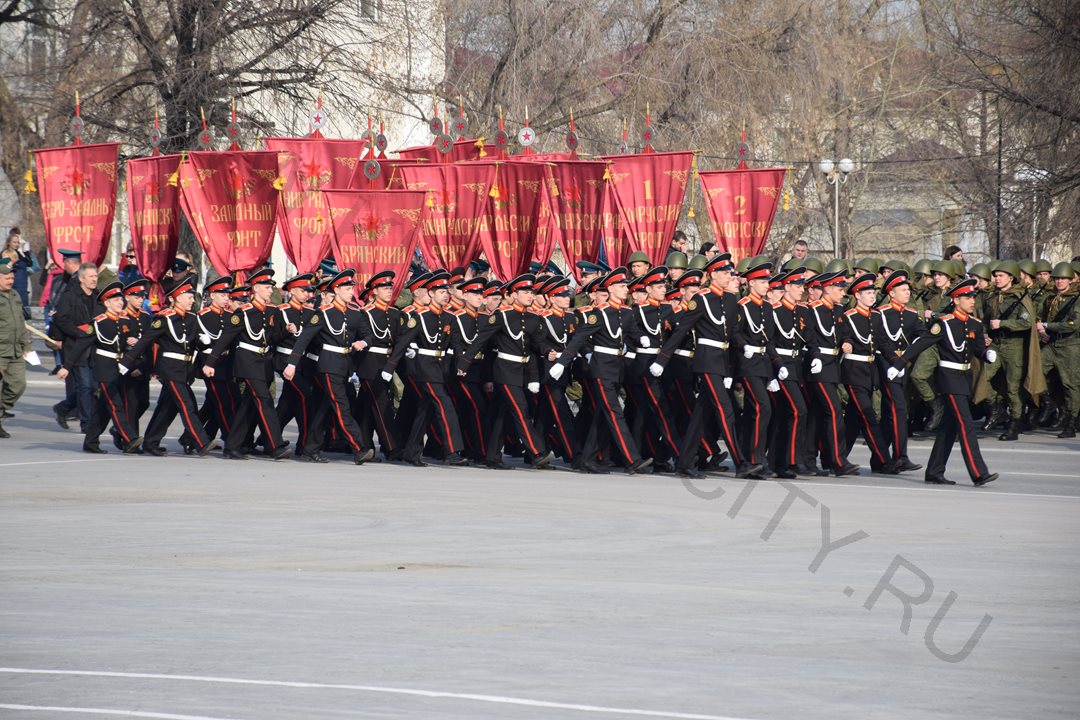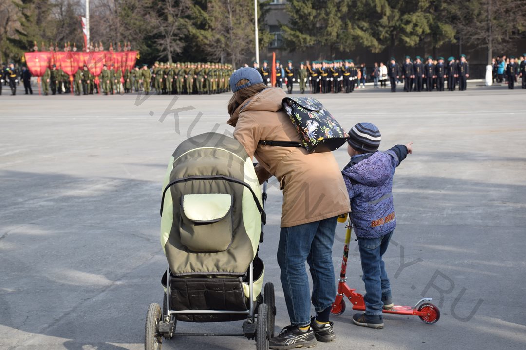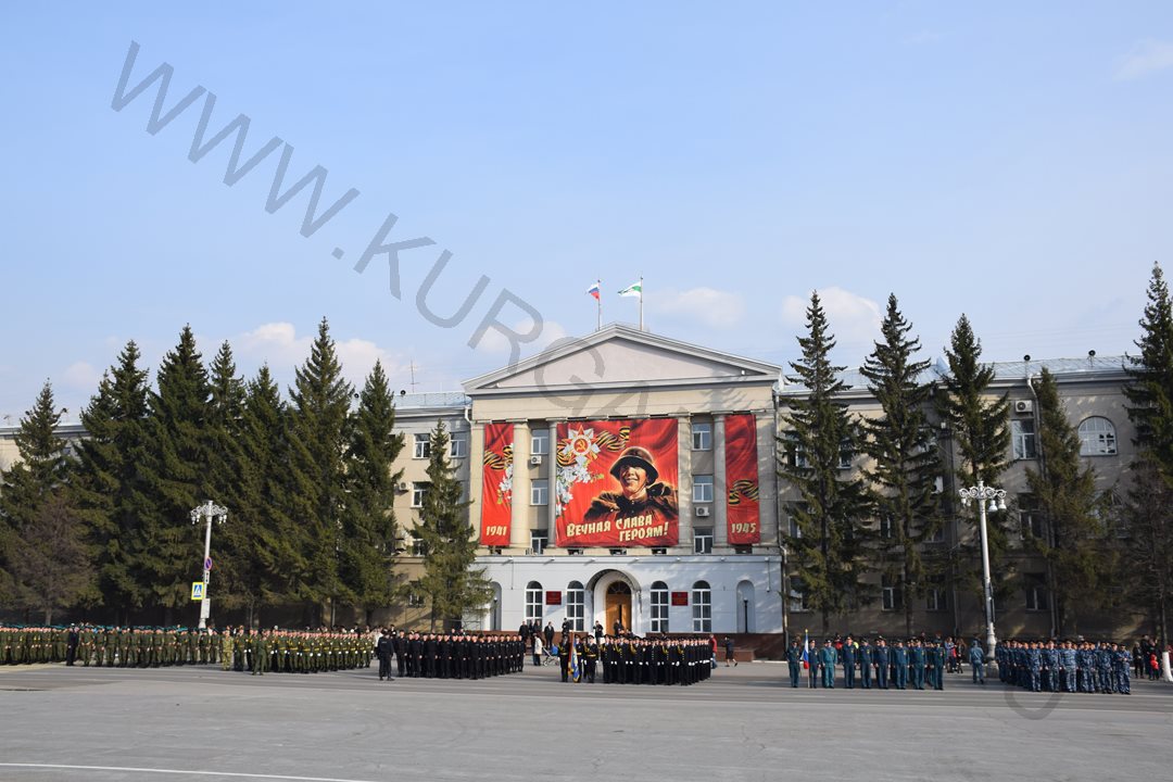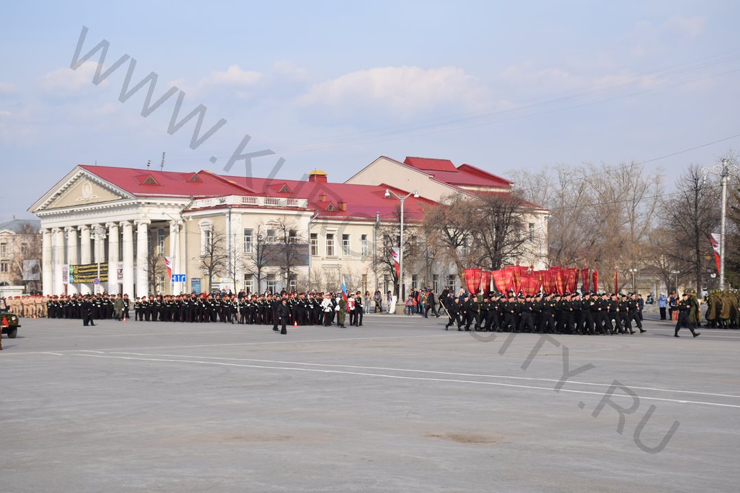На время репетиции движение по улице Гоголя (от ул. Ленина до ул. Володарского) было перекрыто. Чеканя шаг, по площади проследовали более 700 участников парада - кадеты и юнармейцы курганских школ, курсанты Курганского пограничного института ФСБ России, представители силовых структур и ведомств.