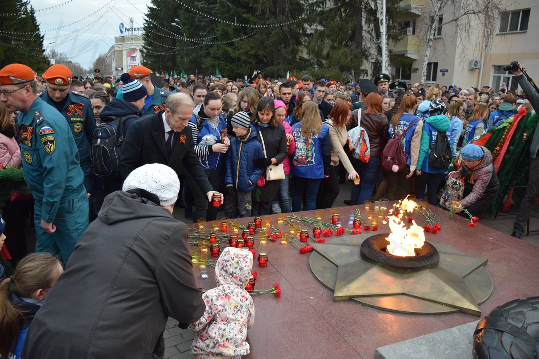 Тысячами памятных огней озарился сегодня весь Курган. Накануне Дня Победы горожане всех возрастов и профессий вышли на улицы областного центра, держа в руках зажженные свечи в память о погибших в годы Великой Отечественной войны. Акция «Свеча памяти» прошла в разных микрорайонах Кургана и завершилась у Вечного огня Мемориала Славы.