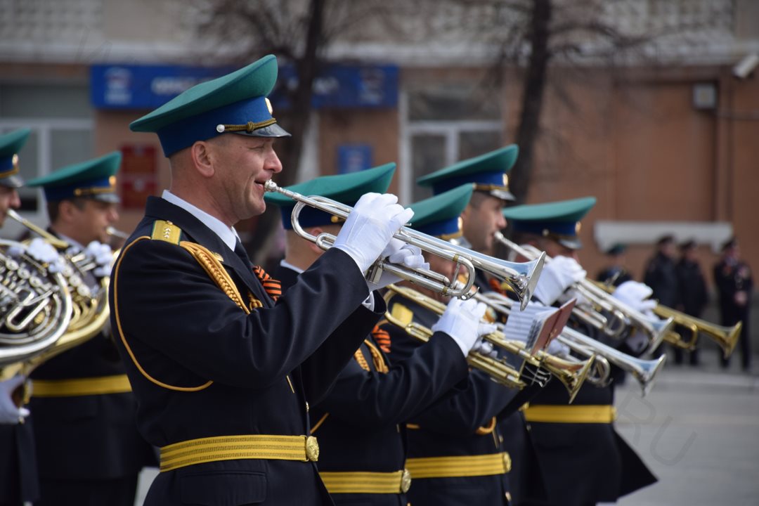 Изюминкой торжественного мероприятия стало показательное выступление взвода почетного караула Курганского пограничного института ФСБ России.