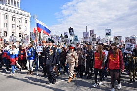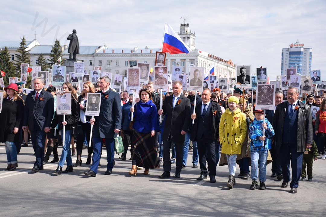 Как и в предыдущие годы, самым многочисленным участником парада стал курганский «Бессмертный полк». Вместе с 16-ю тысяч горожан в этом году в его ряды встали Губернатор Курганской области Алексей Кокорин, председатель Курганской областной Думы Дмитрий Фролов, Глава города Кургана Сергей Руденко и Руководитель Администрации города Кургана Андрей Потапов. Они пронесли по площади и центральным улицам штендеры с портретами своих родственников – солдат Советской Армии - тех, кто в годы войны защищал Родину от врага.