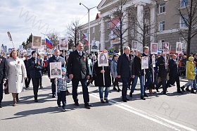 - День Победы - всенародный праздник, он занимает особое место в истории нашего государства, в сердцах всех поколений россиян. Это праздник со слезами на глазах: в нем воедино слились чувства гордости и радости, скорби и боли утрат. Сколько бы ни прошло десятилетий с мая 1945 года, память о событиях той страшной войны, о подвиге советского народа всегда будет жить в нас, объединять поколения и служить источником нравственной силы и патриотизма, - отметил Сергей Владимирович.