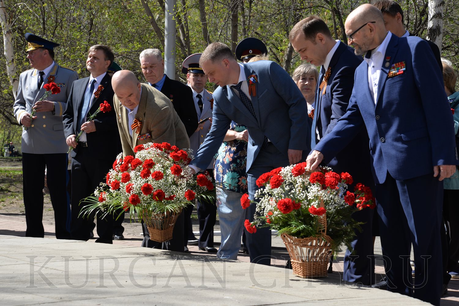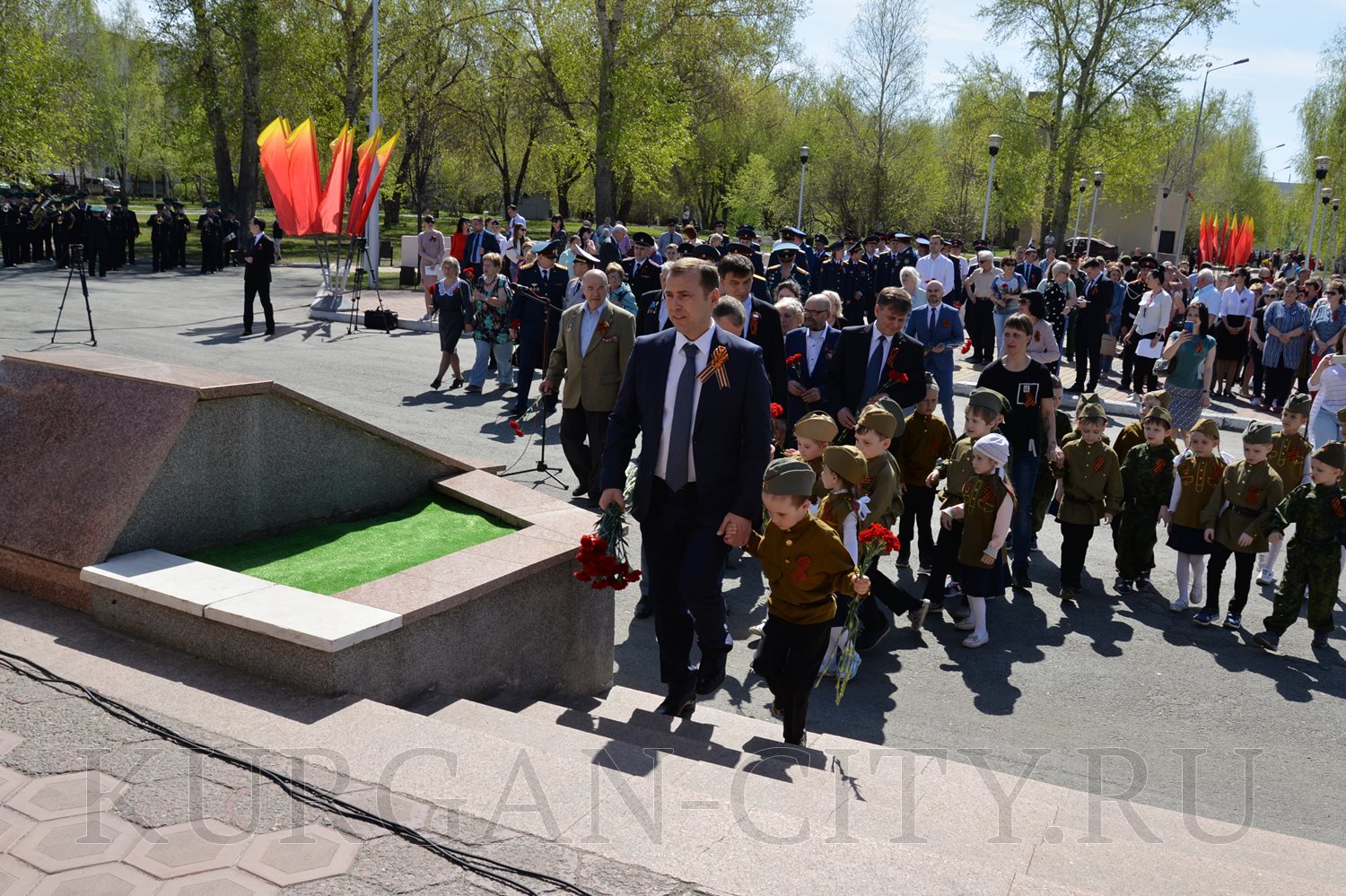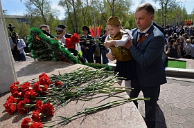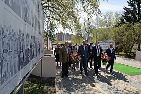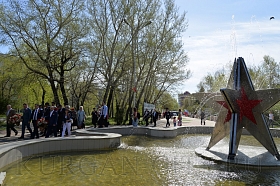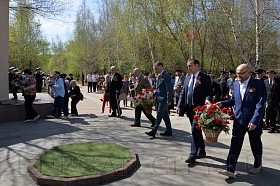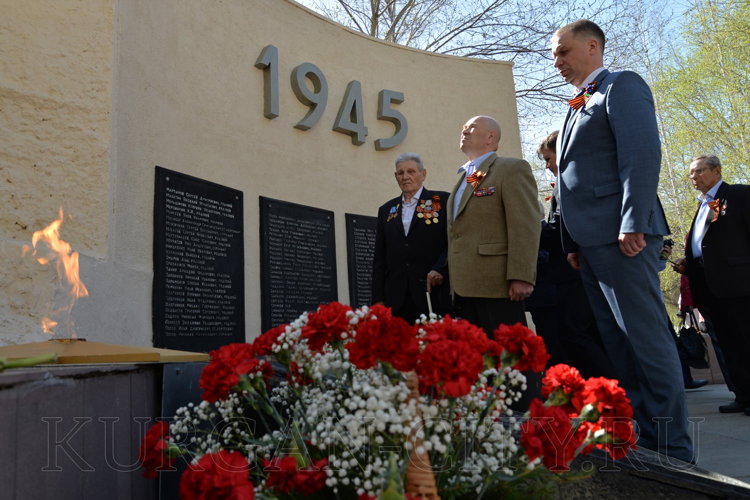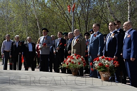 Сегодня, в преддверии празднования 74-й годовщины Победы советского народа в Великой Отечественной войне, в Парке Победы состоялась церемония возложения цветов к Вечному огню братской могилы воинов, умерших от ран в госпиталях города Кургана в Великой Отечественной войне 1941-1945 годов, и Стене Памяти.