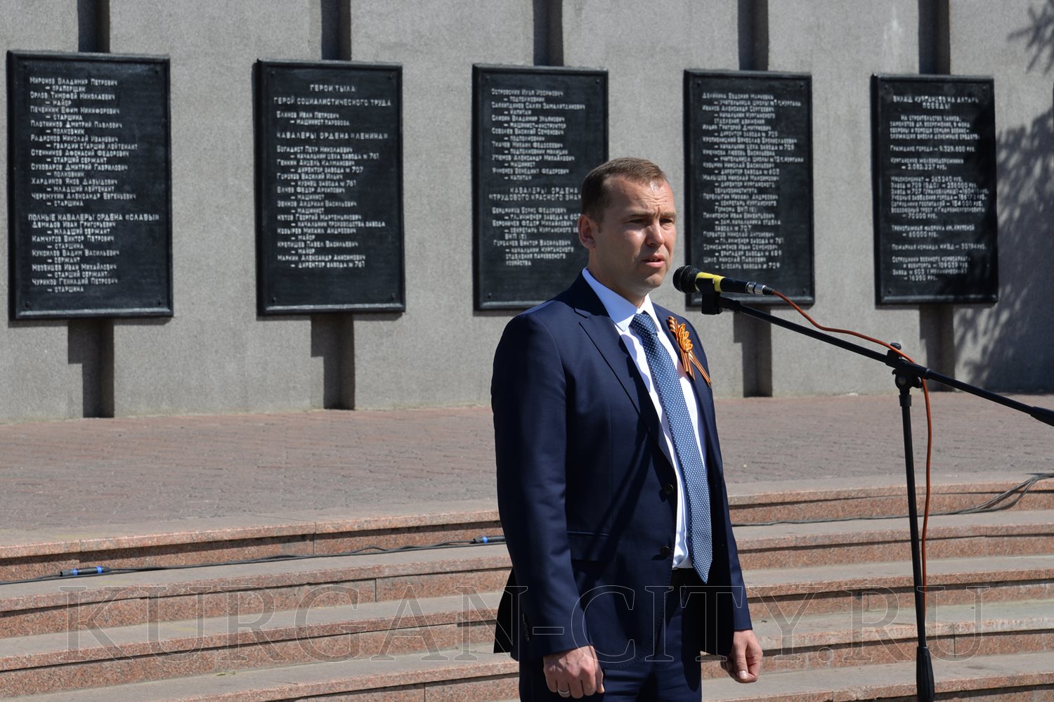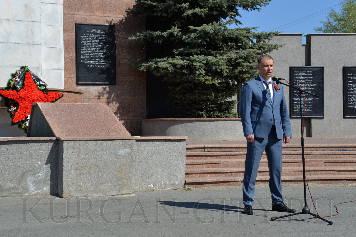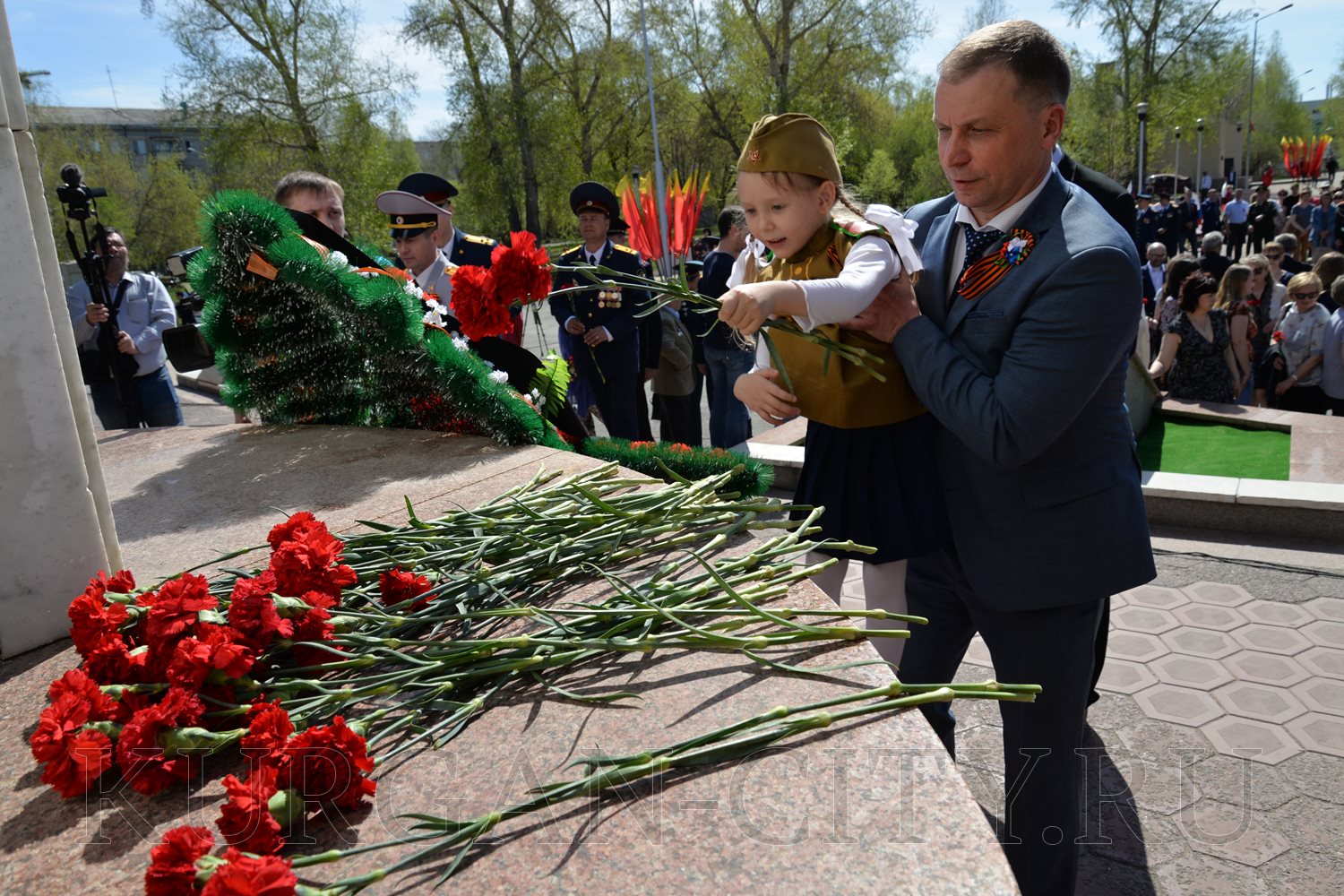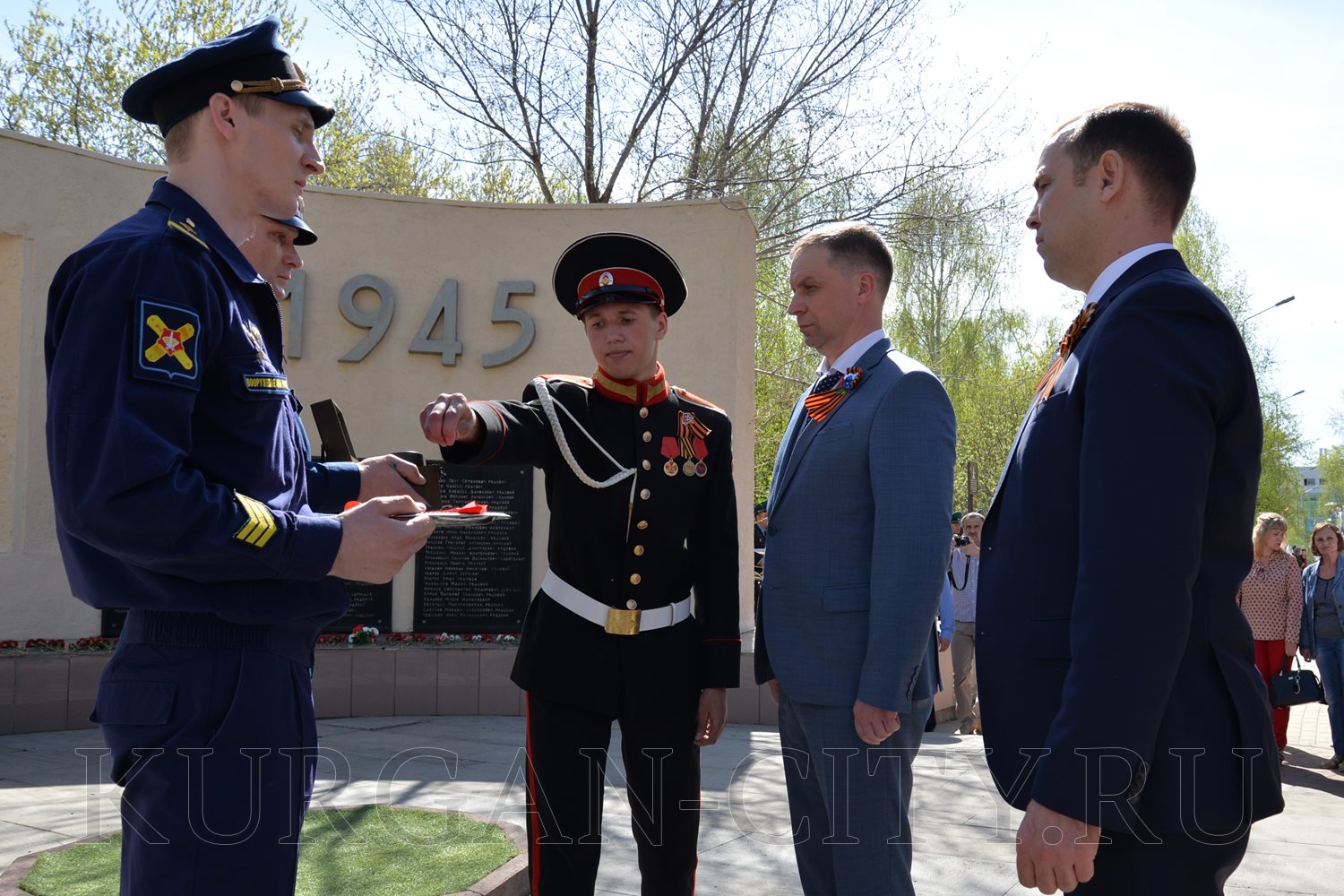 Сегодня, в преддверии празднования 74-й годовщины Победы советского народа в Великой Отечественной войне, в Парке Победы состоялась церемония возложения цветов к Вечному огню братской могилы воинов, умерших от ран в госпиталях города Кургана в Великой Отечественной войне 1941-1945 годов, и Стене Памяти.