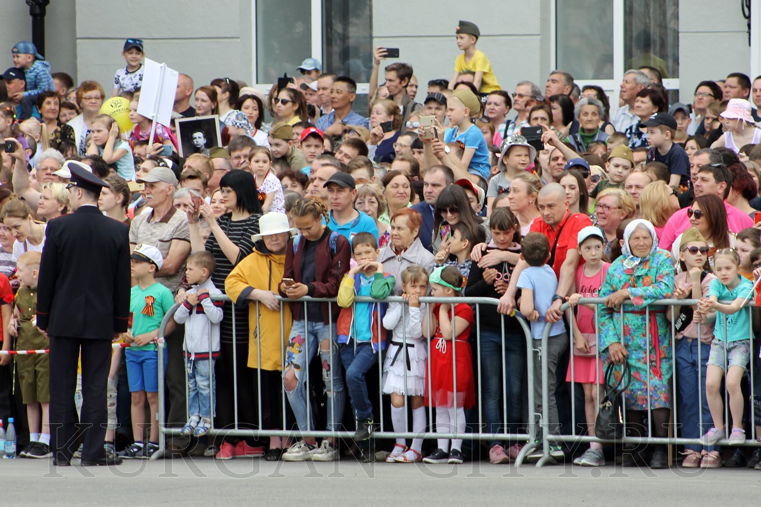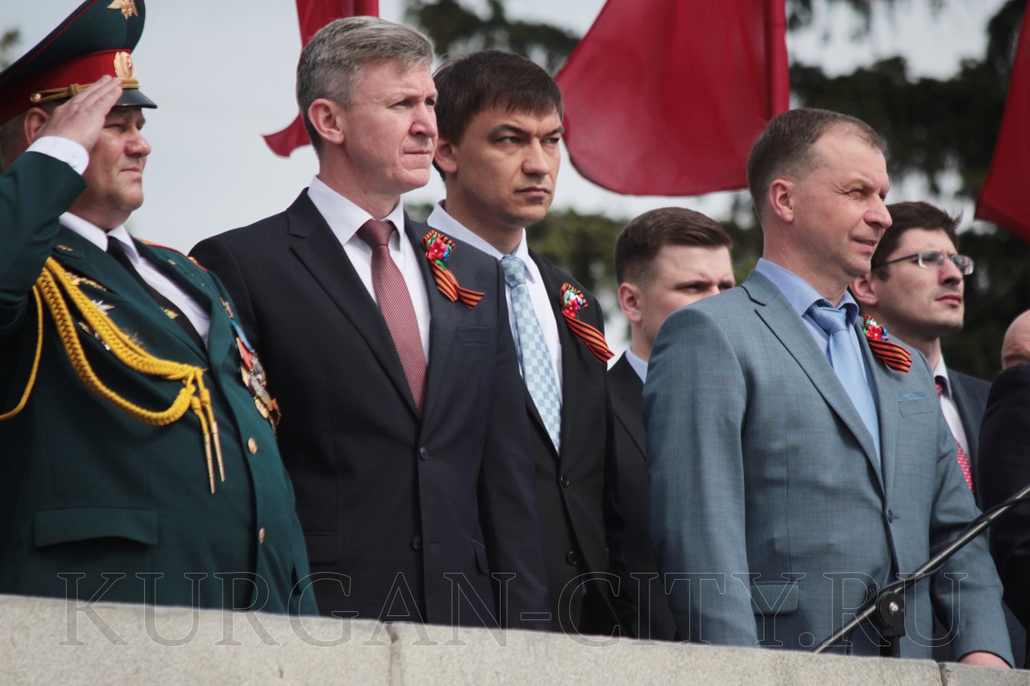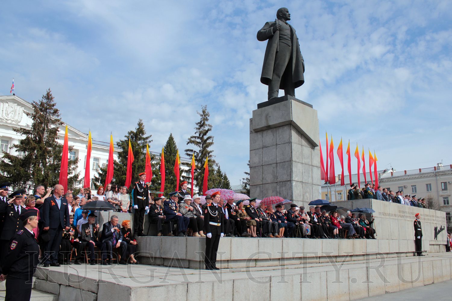 Участие в торжествах приняли тысячи курганцев. Почётные места на трибуне и постаменте памятника заняли участники Великой Отечественной войны, труженики тыла, руководители области, города, силовых структур.