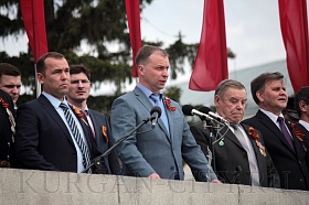 Временно исполняющий обязанности Губернатора Курганской области Вадим Шумков в своем выступлении подчеркнул, что в годы войны наша область наряду с другими регионами Урала и Сибири стала опорной точкой, откуда страна черпала силы для победы над могущественным врагом, незнавшим прежде поражения. «Мы победили и цена этой победы огромна - 26 млн. 600 тысяч человек. Безвозвратные потери СССР составили 11 млн. 444 тысяч человек, из них 8 млн. 668 тысяч человек военнослужащих, 13 млн 684 тысячи человек - потери гражданского населения в зоне оккупации. Преднамеренно истреблены 7 млн. 420 тысяч человек; на принудительных работах погибли 2 млн 400 тысяч человек; от голода, болезни и отсутствия медицинской помощи – 4 млн. 100 тысяч человек. Вдумайтесь в эти страшные цифры, помните об этих людях: они сделали для нас всё, чтобы мы жили сегодня. Наш долг не только в том, чтобы вспоминать об этом накануне светлого дня Победы, а в том, чтобы жить так, чтобы светлой памяти эти этих людей не было за нас стыдно», - отметил Вадим Михайлович.
