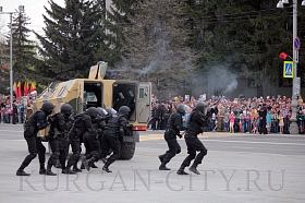 Также зрители могли наблюдать за показательными выступлениями взвода почетного караула Курганского пограничного института ФСБ России, отдела специального назначения «Мираж» Управления федеральной службы исполнения наказаний России по Курганской области.