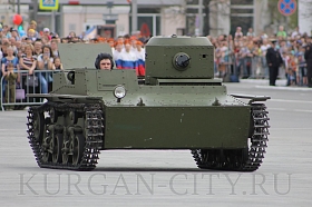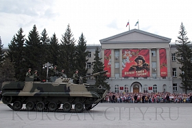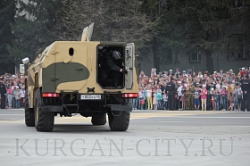 Также на площадь вышли легковой автомобиль 1943 года, прибывший на парад из районного центра Варгаши и военная техника, выпускаемая Публичным акционерным обществом «Курганмашзавод»: бронетранспортер - модернизированная машина десанта, боевая машина пехоты–3, боевая десантная машина–4М, бронеавтомобиль КАМАЗ 5350 и бронетранспортер.