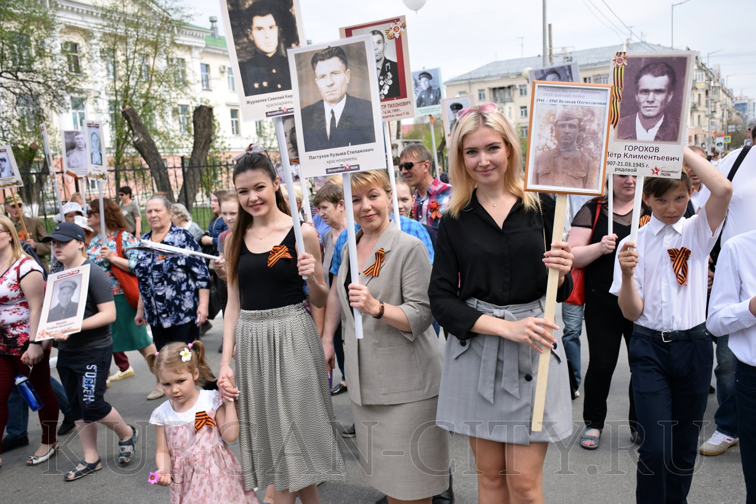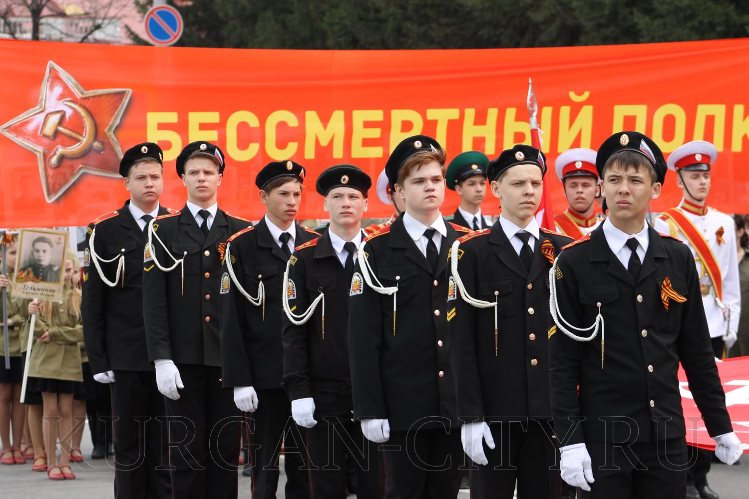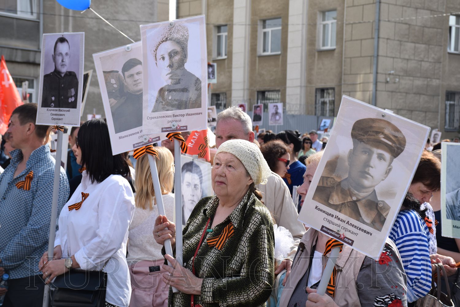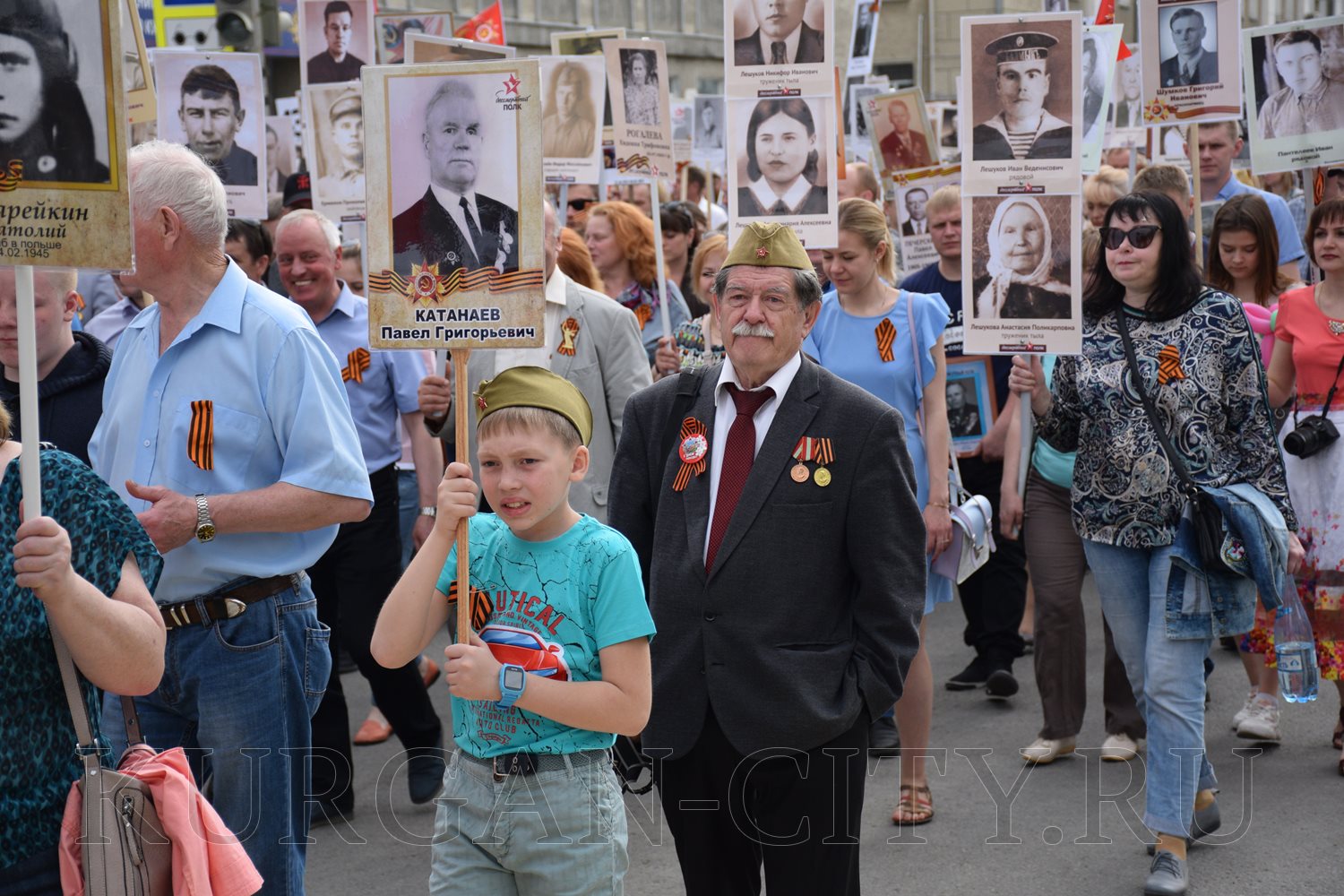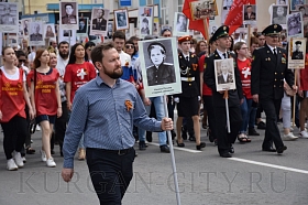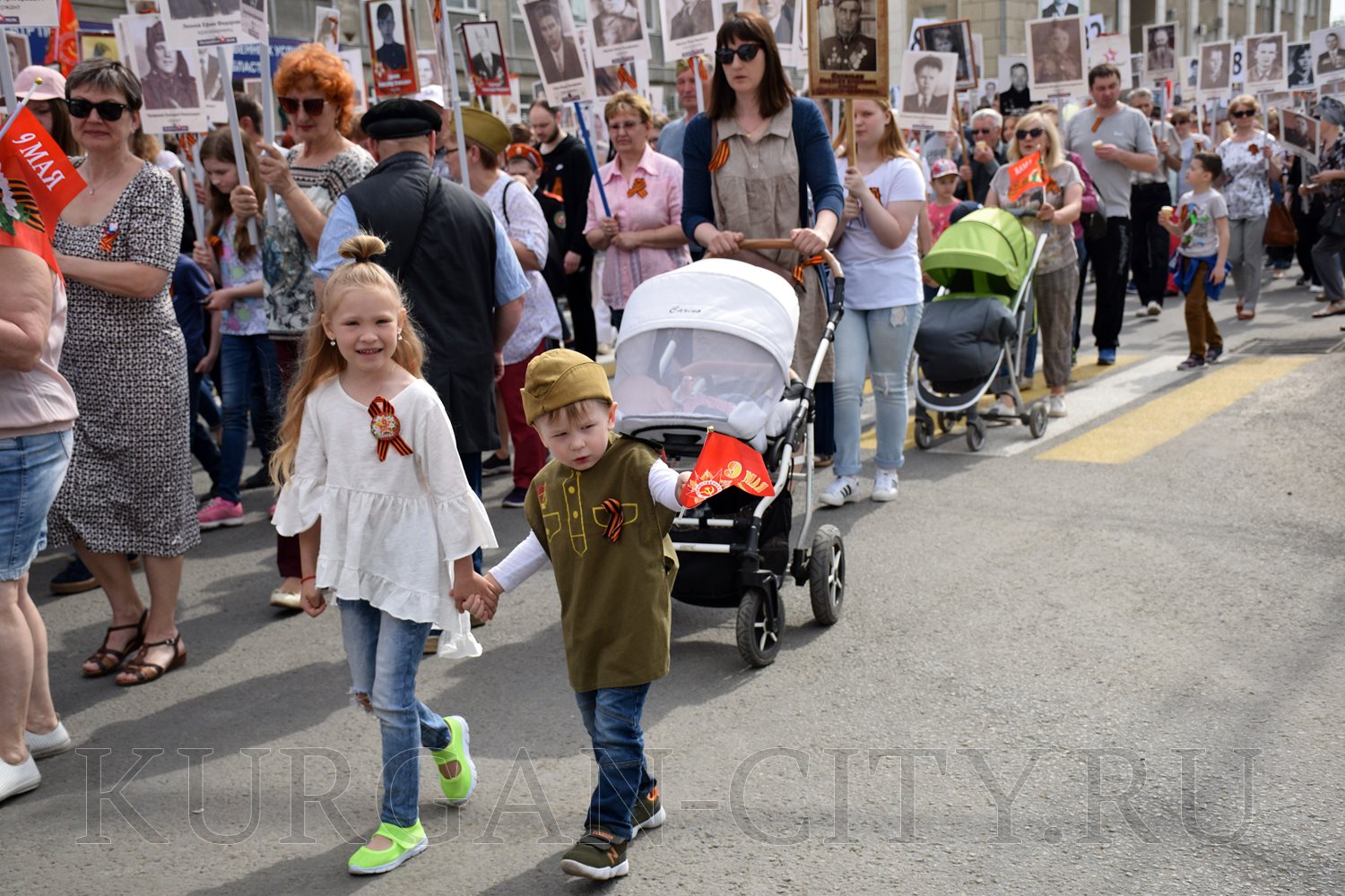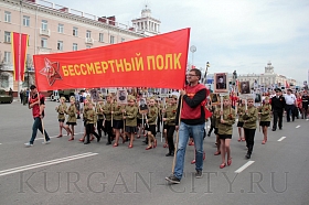 Построение колон началось с 9:30 часов на Троицкой площади. Желающих принять участие в памятной акции было очень много. Целыми семьями и парами, в одиночку и в сопровождении своих близких курганцы гордо держали штендеры с портретами своих героев. В назначенное время «Бессмертный полк» единым потоком двинулся в сторону центральной площади. Как и в предыдущие годы, он стал самым многочисленным участником торжественного мероприятия «Победителям - слава! Поколениям – мир!».