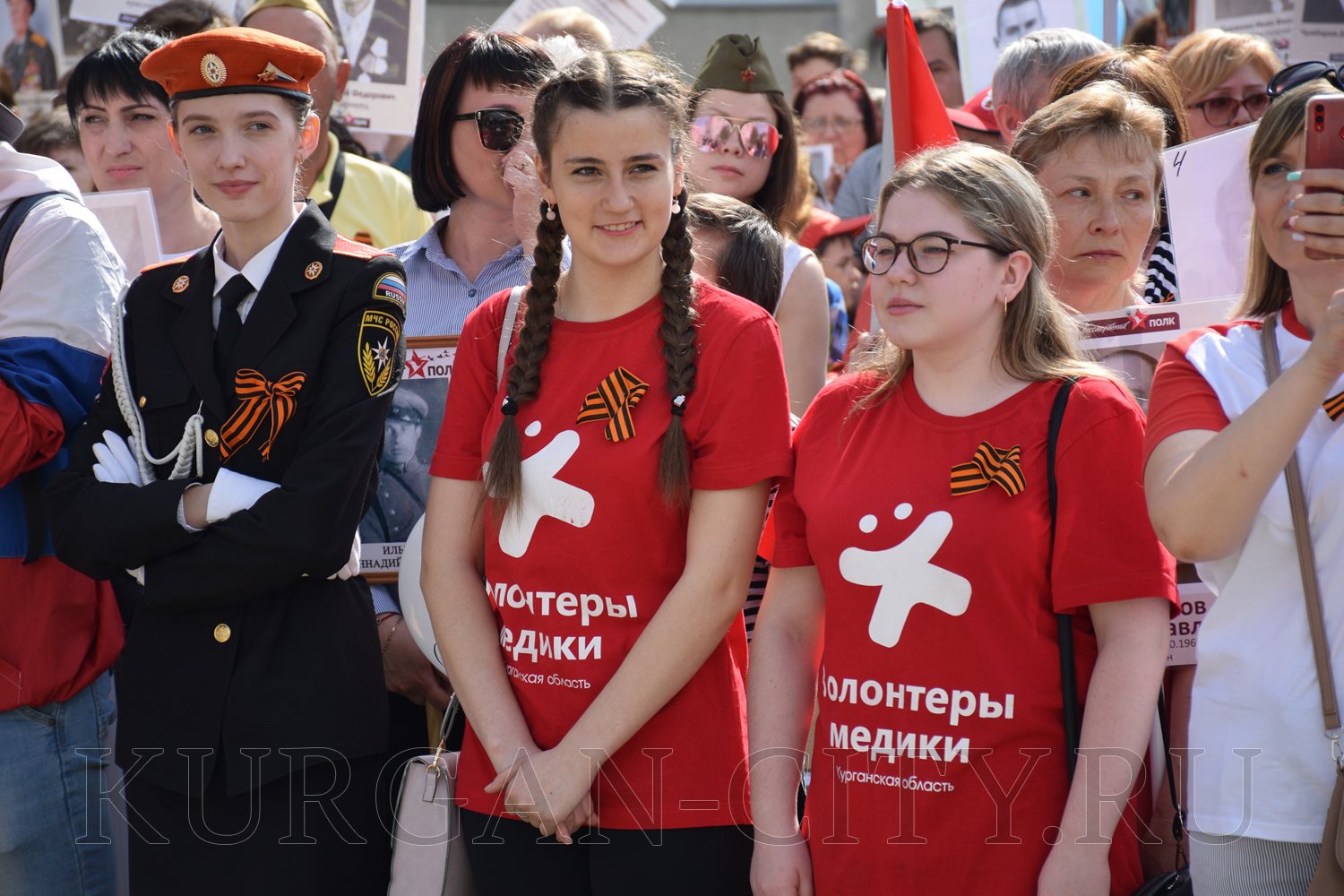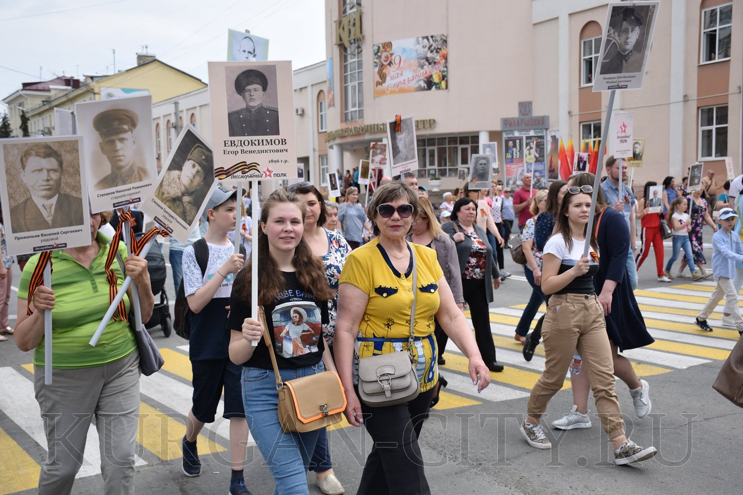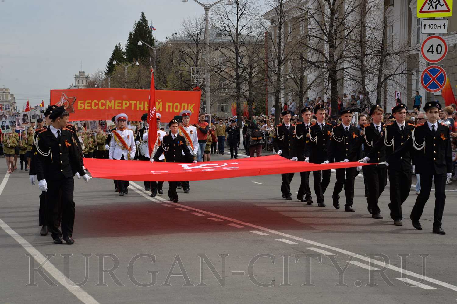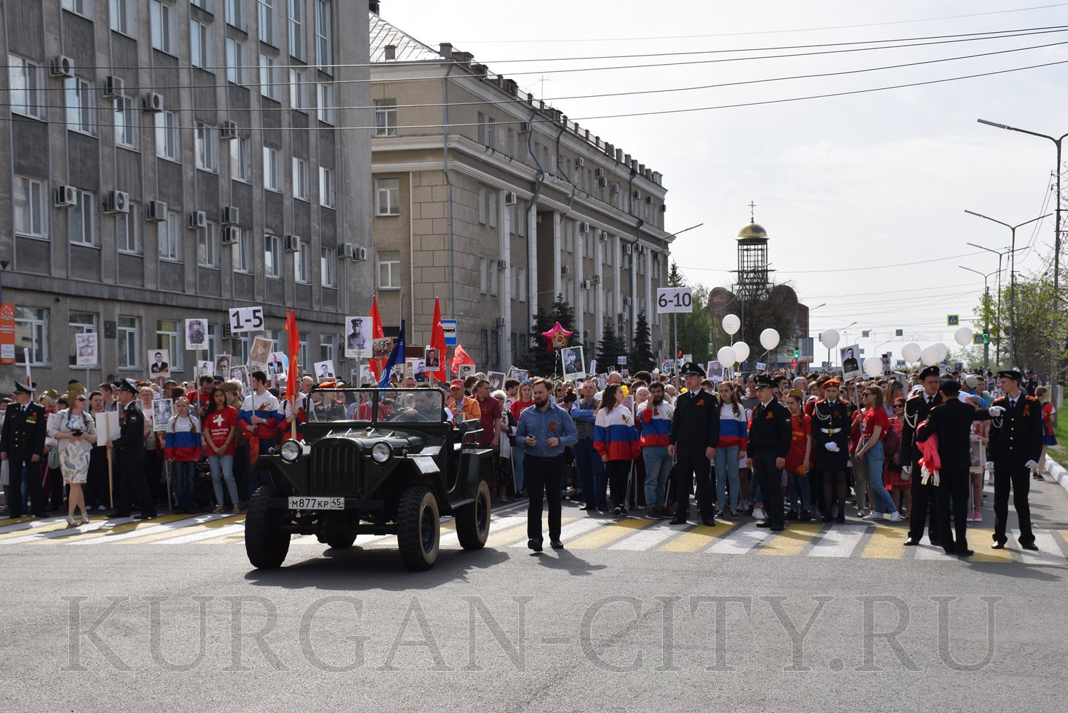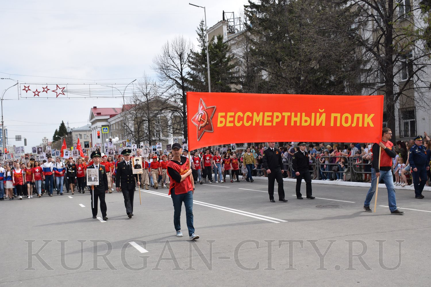Построение колон началось с 9:30 часов на Троицкой площади. Желающих принять участие в памятной акции было очень много. Целыми семьями и парами, в одиночку и в сопровождении своих близких курганцы гордо держали штендеры с портретами своих героев. В назначенное время «Бессмертный полк» единым потоком двинулся в сторону центральной площади. Как и в предыдущие годы, он стал самым многочисленным участником торжественного мероприятия «Победителям - слава! Поколениям – мир!».