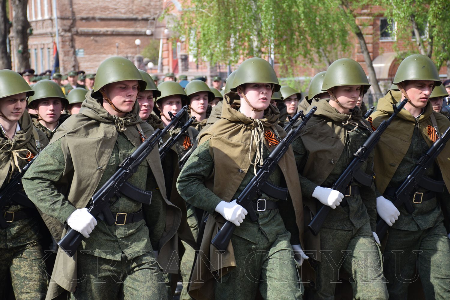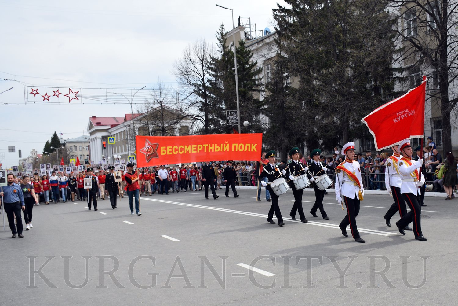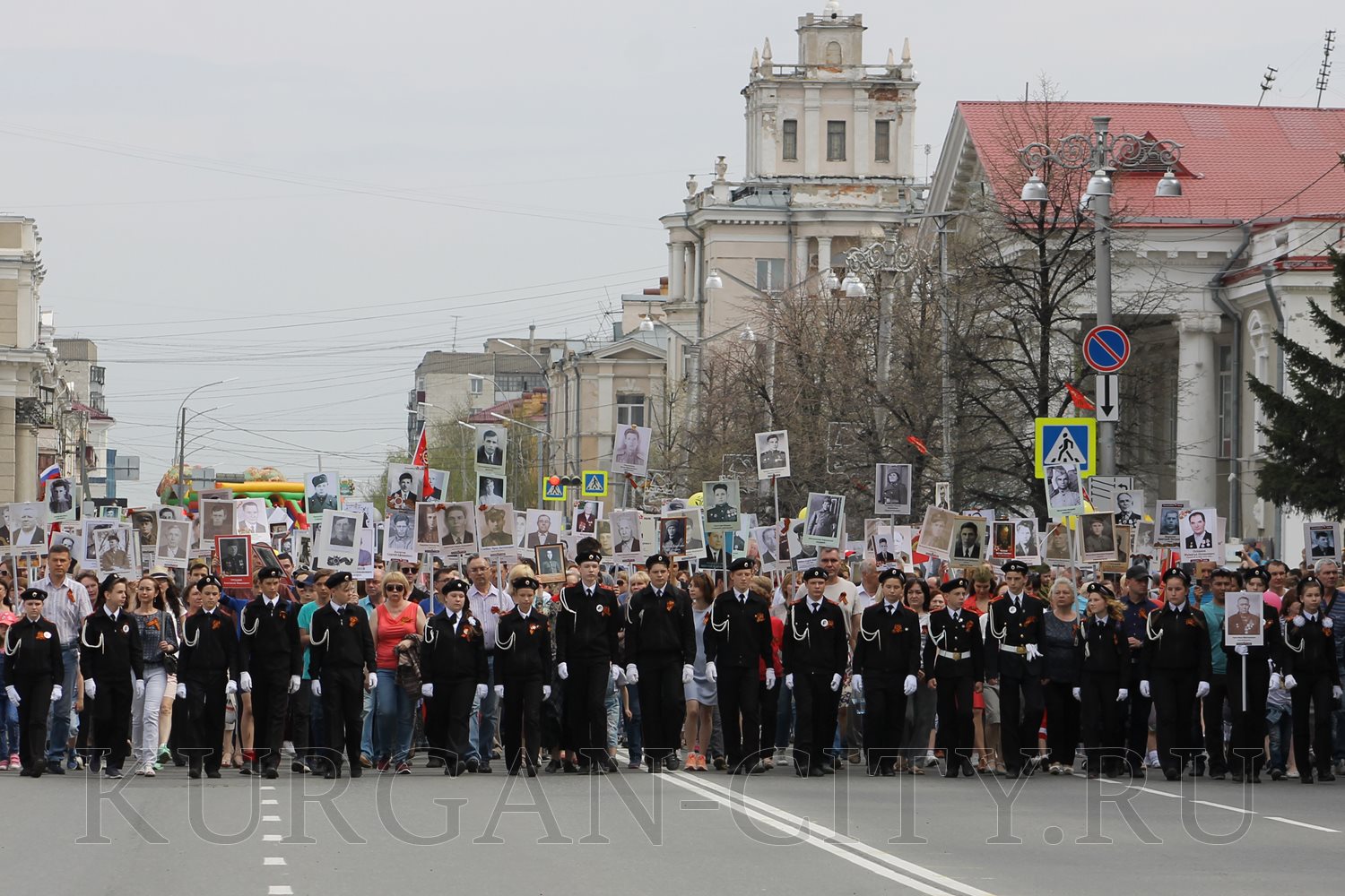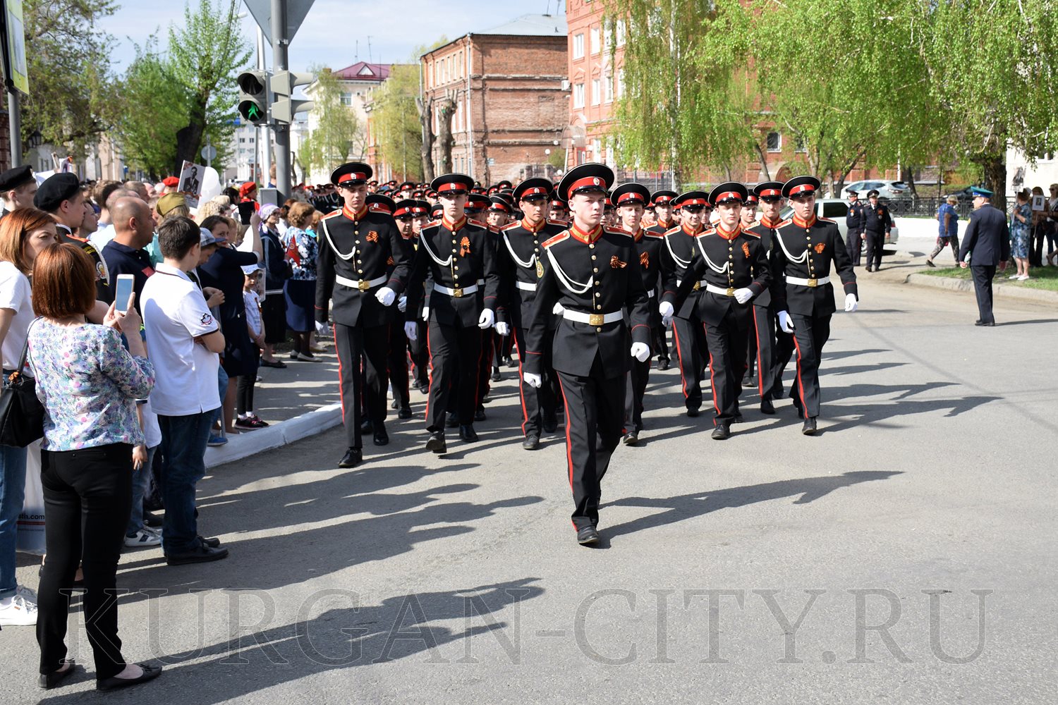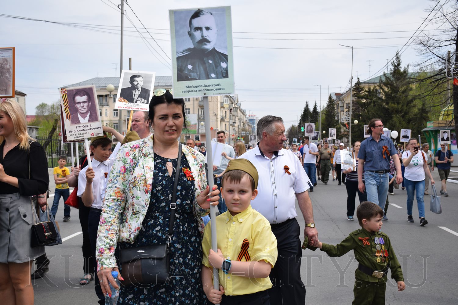 Построение колон началось с 9:30 часов на Троицкой площади. Желающих принять участие в памятной акции было очень много. Целыми семьями и парами, в одиночку и в сопровождении своих близких курганцы гордо держали штендеры с портретами своих героев. В назначенное время «Бессмертный полк» единым потоком двинулся в сторону центральной площади. Как и в предыдущие годы, он стал самым многочисленным участником торжественного мероприятия «Победителям - слава! Поколениям – мир!».