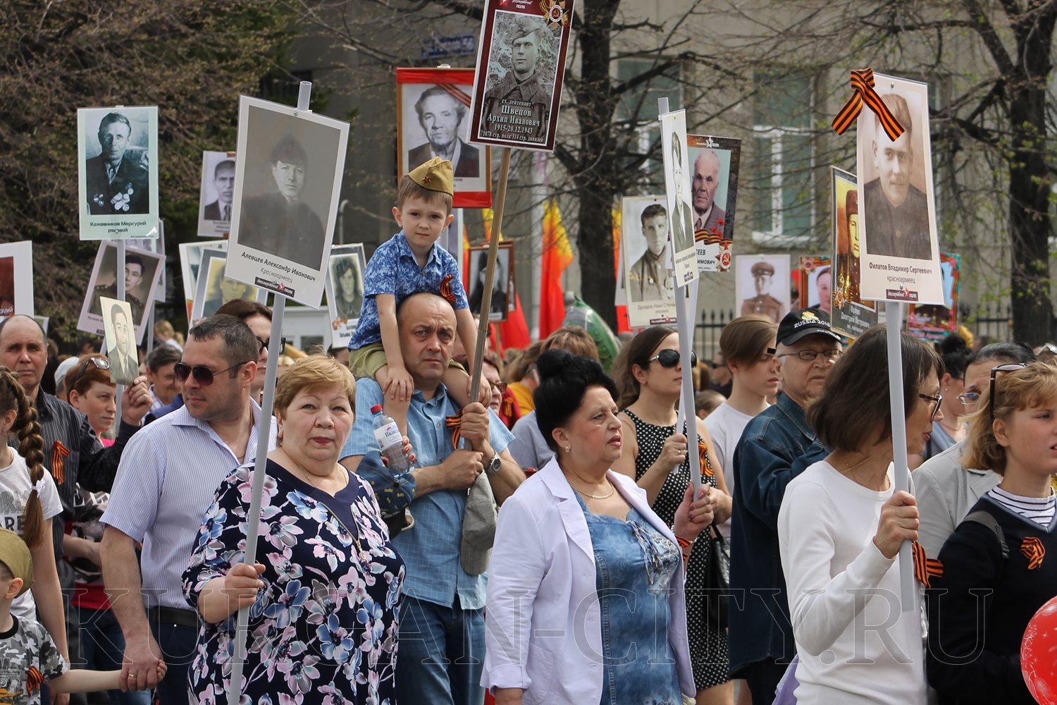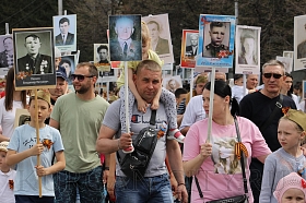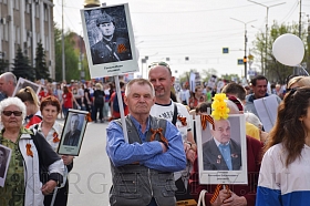 Более 18-ти тысяч жителей города сегодня, в день 74-ой годовщины Победы советского народа в Великой Отечественной войне, приняли участие в шествии «Бессмертного полка». С портретами своих родных и близких, которые сражались на фронтах, трудились в тылу и мужественно защищали Родину, курганцы прошли по центральным улицам города.