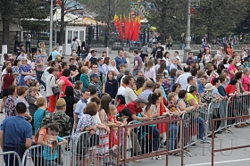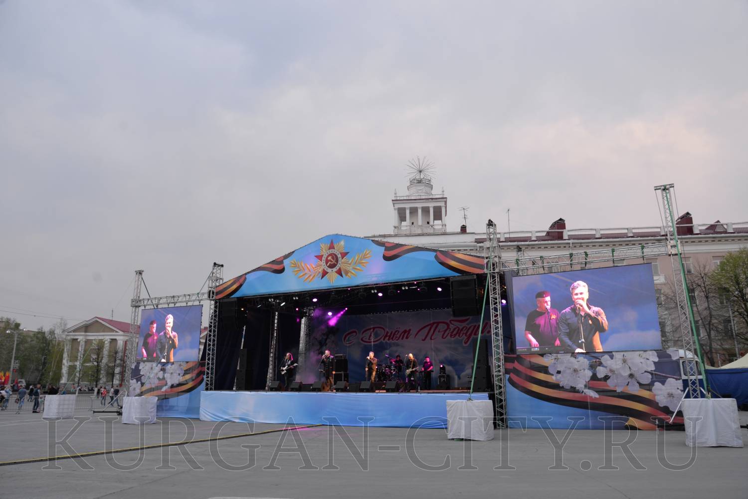 В День Победы на центральной эстраде площади им. Ленина выступила музыкальная группа «Яхонт», г. Красноярск. Лауреат российских и международных конкурсов, авторы хитов «Заново начать», «Полковник» и других поздравили курганцев с 74-ой годовщиной Победы и подарили им творческий подарок.