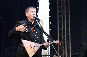 С главной городской сцены звучали хиты прошлых лет и песни на военную тематику. Пели о войне, Родине, российской армии. С теплом принимал курганский зритель песни «Черный ворон», «Ой, то не вечер», «Дундари», «Любо, братцы, любо», «Летела пуля», «Хакасия». Были исполнены и композиции из нового репертуара группы.