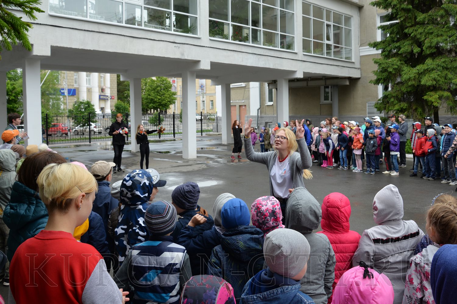 Убедиться в этом депутаты смогли сами в ходе экскурсии по учреждению. Несмотря на пасмурную погоду, с утра дети построились на линейку во внутреннем дворе учреждения. Это место, по словам руководства лагеря, пользуется популярностью у ребят: здесь можно играть в мяч, бадминтон и другие подвижные игры. После небольшой зарядки на свежем воздухе отряды отправились на завтрак. Питание организовано в столовой гимназии № 32, которая располагается рядом с ДД(ю)Т. Работает в лагере и медицинский кабинет, где дети проходят осмотры и при необходимости получают первую медицинскую помощь. Для различных мероприятий используются концертный и спортивный залы. Свободное время девочки и мальчики проводят в отрядных кабинетах. Отдых детей помогают организовывать 25 вожатых.