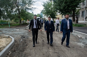 В рамках объезда Павел Каргаполов посетил дворы домов №№ 3 и 5 по пр.Машиностроителей, где в настоящий момент ведутся ремонтные работы. Подрядчиком там выступает ООО «Стройсити». На сегодняшний день вблизи дома № 5 на тротуарах уложен щебень и началась укладка асфальта на тротуарах. Около дома № 3 тротуар уже заасфальтирован, ведется благоустройство междворового проезда.
