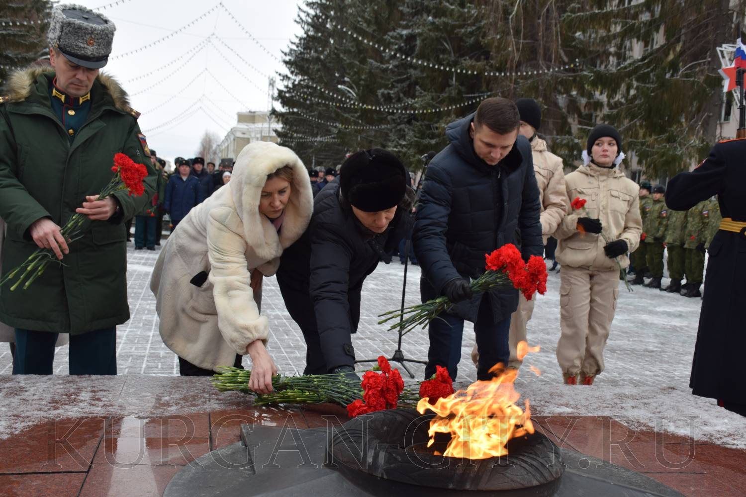 Сегодня, в День защитника Отечества, состоялась торжественная церемония возложения цветов к Вечному огню «Спасибо тебе, солдат». Память воинов, мужественно сражавшихся за свою Родину в разные периоды ее истории, почтили заместители губернатора Константин Ермаков и Наталья Кирилова, члены правительства, первый заместитель главы города Кургана Павел Каргаполов, военный комиссар Курганской области Айрат Зарипов, представители силовых ведомств, общественных организаций, кадеты, юнармейцы и волонтёры.