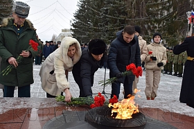 Присутствующие почтили минутой молчания память погибших. От имени Главы города Кургана цветы к Вечному огню – символу памяти воинов, павших за Родину - возложил первый заместитель Главы города Кургана Павел Каргаполов.