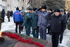 Память Героев Отечества почтили минутой молчания. Губернатор региона Вадим Шумков и Глава города Елена Ситникова возложили цветы к Вечному огню Мемориального комплекса воинов-курганцев, погибших в годы Великой Отечественной войны. Также цветы к Вечному огню возложили представители Правительства Курганской области и руководители федеральных ведомств, ветераны, представители общественных организаций.