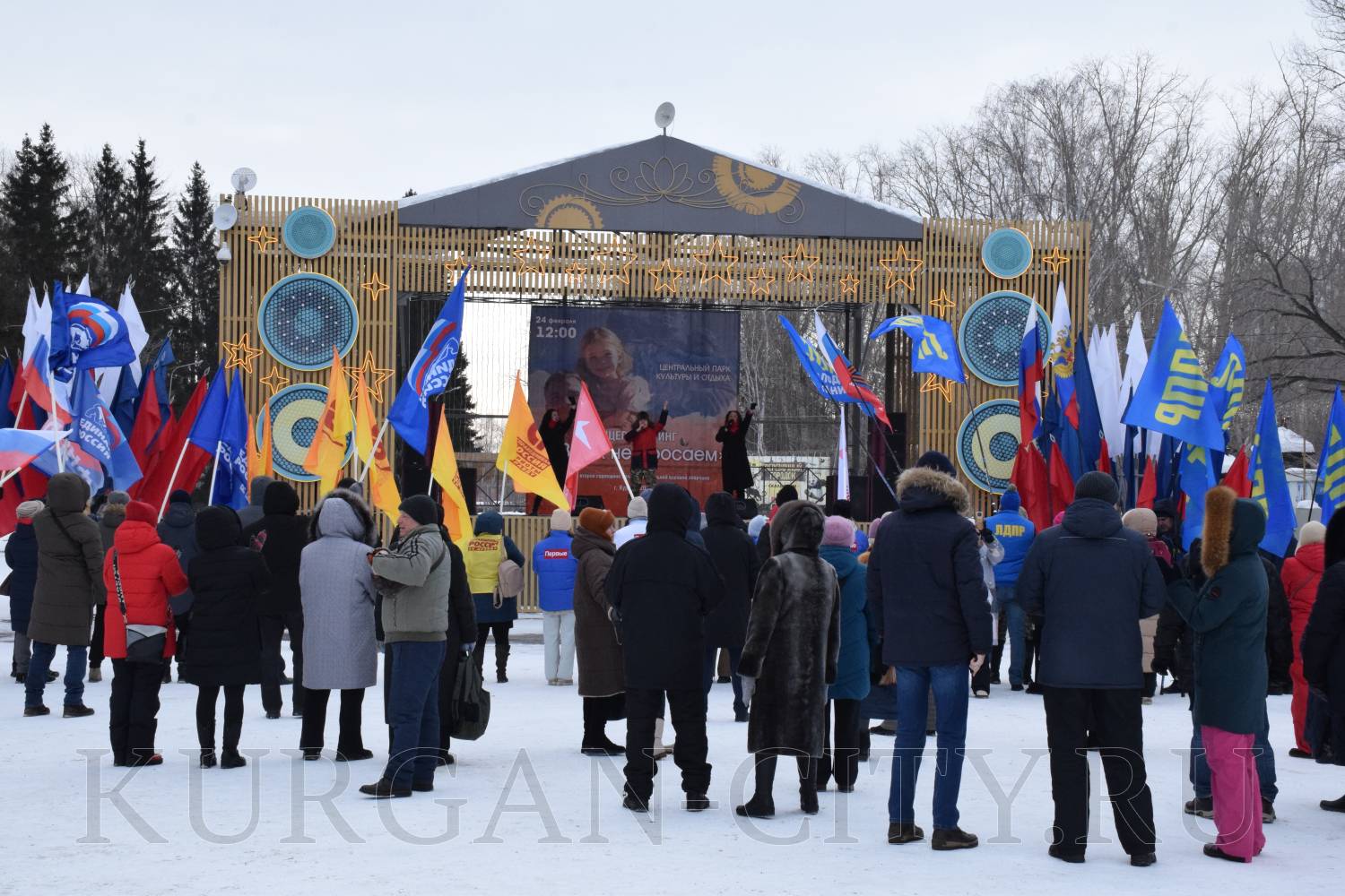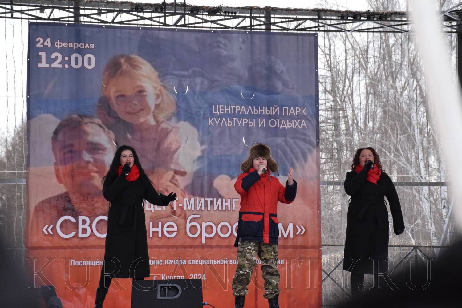 Сегодня, 24 февраля 2024 года, исполняется два года с начала специальной военной операции на Украине. В Центральном парке культуры и отдыха состоялся митинг-концерт, посвященный этой дате. В нем приняли участие представители Правительства Курганской области, временно исполняющий полномочия Главы города Кургана Анастасия Аргышева, ее заместитель, директор Департамента социальной политики Юлия Гурьянова, представители общественных организаций, горожане.