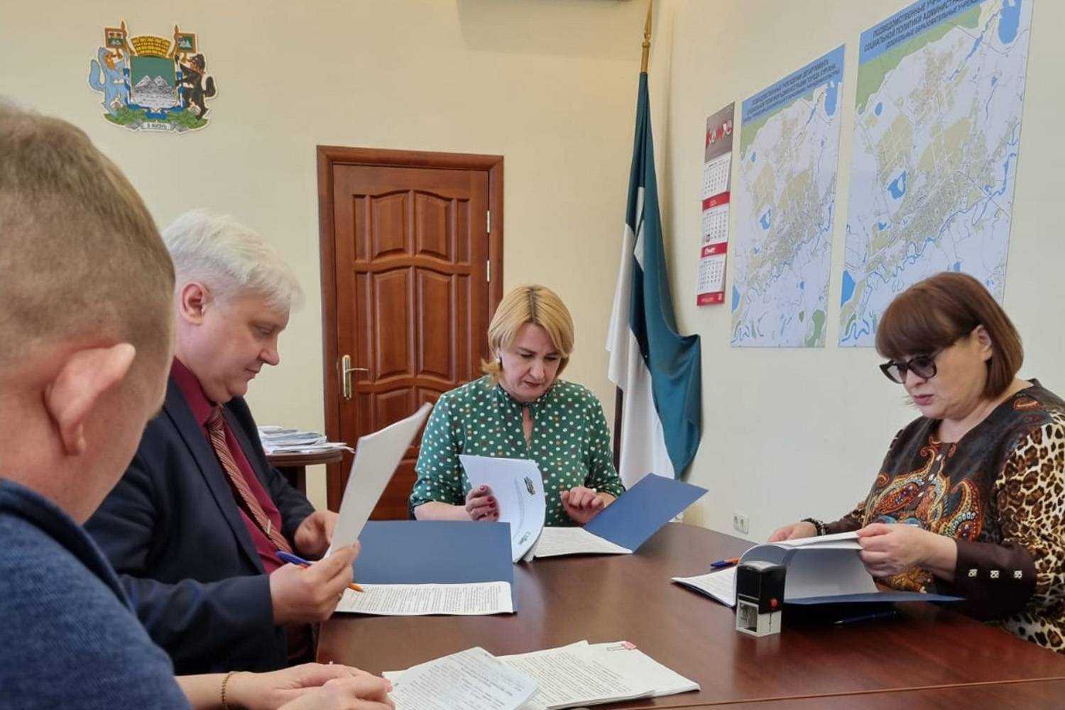 В администрации города Кургана состоялась церемония подписания территориального отраслевого трехстороннего соглашения между Курганской городской организацией Профессионального союза работников народного образования и науки Российской Федерации, органами местного самоуправления города Кургана и работодателями на 2024 – 2027 годы. В ней приняли участие заместитель главы города Кургана, директор департамента социальной политики администрации города Кургана Юлия Гурьянова, председатель Курганской городской организации Профессионального союза работников народного образования и науки Российской Федерации Нина Михайлова, председатель Совета директоров образовательных учреждений города Кургана, директор средней школы № 5 Сергей Корнев, а также заведующий детским садом № 129, председатель Совета заведующих дошкольных образовательных учреждений города Кургана Татьяна Серебряк.