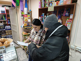Сотрудники рабочей группы выехали в микрорайон Рябково. Были проверены продуктовый магазин, магазин разливных напитков, пункт выдачи одного из маркетплейсов, шиномонтажная мастерская.