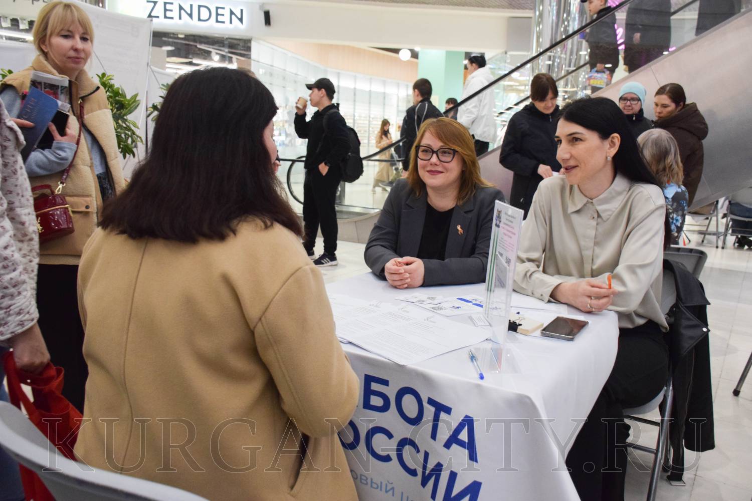 Сегодня в Кургане в рамках регионального этапа Всероссийской ярмарки трудоустройства «Работа России. Время возможностей» прошла ярмарка вакансий предприятий Кургана и Курганской области. Мероприятие было организовано на площадке торгово-развлекательного центра «ГиперСити». Свои вакансии предложила и администрация города Кургана.