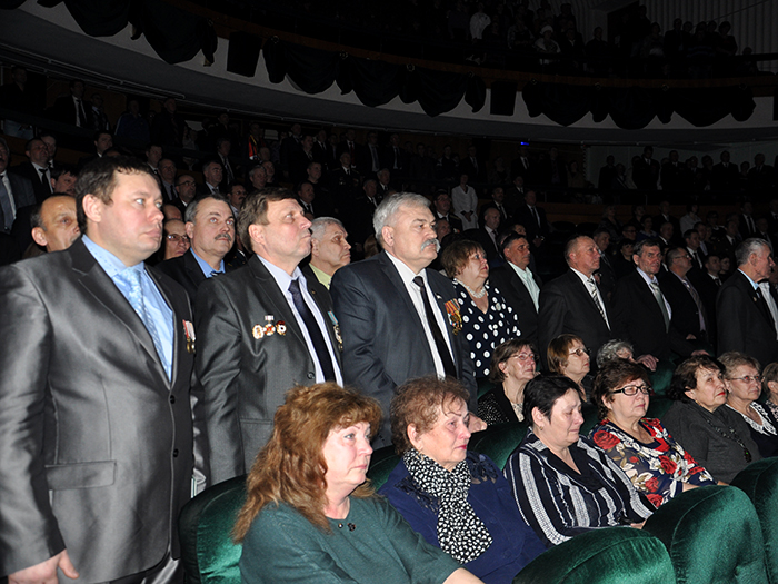 В зале - руководители региона, областного центра Зауралья, ветераны и офицеры вооруженных сил, правоохранительных органов, силовых структур, представители общественных организаций, кадеты, на почетных местах – матери и вдовы тех, кто не вернулся с полей сражений.