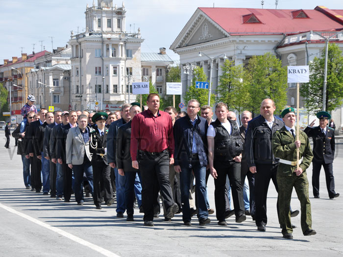 Во время торжественного митинга на центральной площади нынешние курсанты Курганского пограничного института ФСБ России вынесли знамя института и пронесли его перед рядами выпускников. Боевое знамя, которое было вручено вузу на основании Указа Президиума Верховного Совета СССР в 1968 году, является символом доблести, чести и славы института. После торжественной части выпускники прошлых лет и сегодняшние курсанты под звуки оркестра строевым шагом промаршировали по центральной площади города, а затем направились на экскурсию в стены обновленного родного учебного заведения, которая в этот день специально для них была организована.