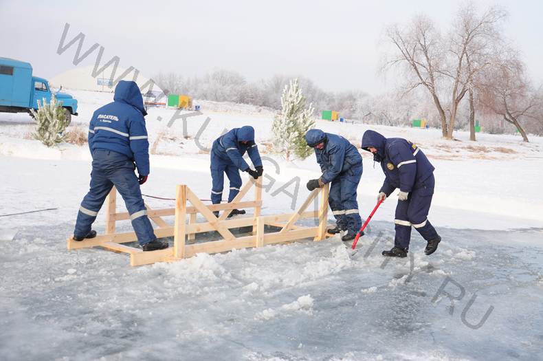 Сегодня специалисты АО «Водный союз» совместно с сотрудниками МКУ "Управление по делам ГО и ЧС города Кургана" проводят вырубку купелей. Их также оборудуют сходнями - деревянными конструкциями для спуска в воду, которые в этом году обновлены полностью. В целях безопасности и для поддержания в надлежащем состоянии купелей и места проведения праздника с 18 по 20 января на «Бабьих песках» будет организовано круглосуточное дежурство сотрудников ответственных служб и ведомств. Кроме того, как сообщил Аркадик Галустов, сегодня в 23.45 и до момента закрытия места для омовения горожан на Голубых озерах будет выставлен пост спасателей. По окончании всех мероприятий купели будут закрыты, а после – демонтированы.