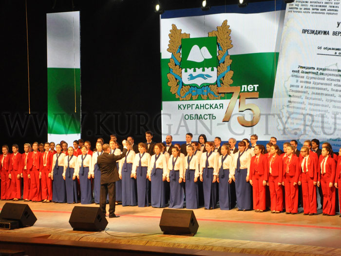 Юбилейное торжество, посвященное 75-летию Курганской области, состоялось сегодня в Курганской областной филармонии. В церемонии приняли участие Полномочный представитель Президента Российской Федерации в Уральском федеральном округе Игорь Холманских, Губернатор Курганской области Алексей Кокорин, представители Совета Федерации и депутаты Государственной Думы Федерального Собрания Российской Федерации, делегации городов и районов Курганской области. Делегацию муниципального образования город Курган возглавили Глава Кургана Сергей Руденко и Руководитель Администрации города Андрей Потапов.